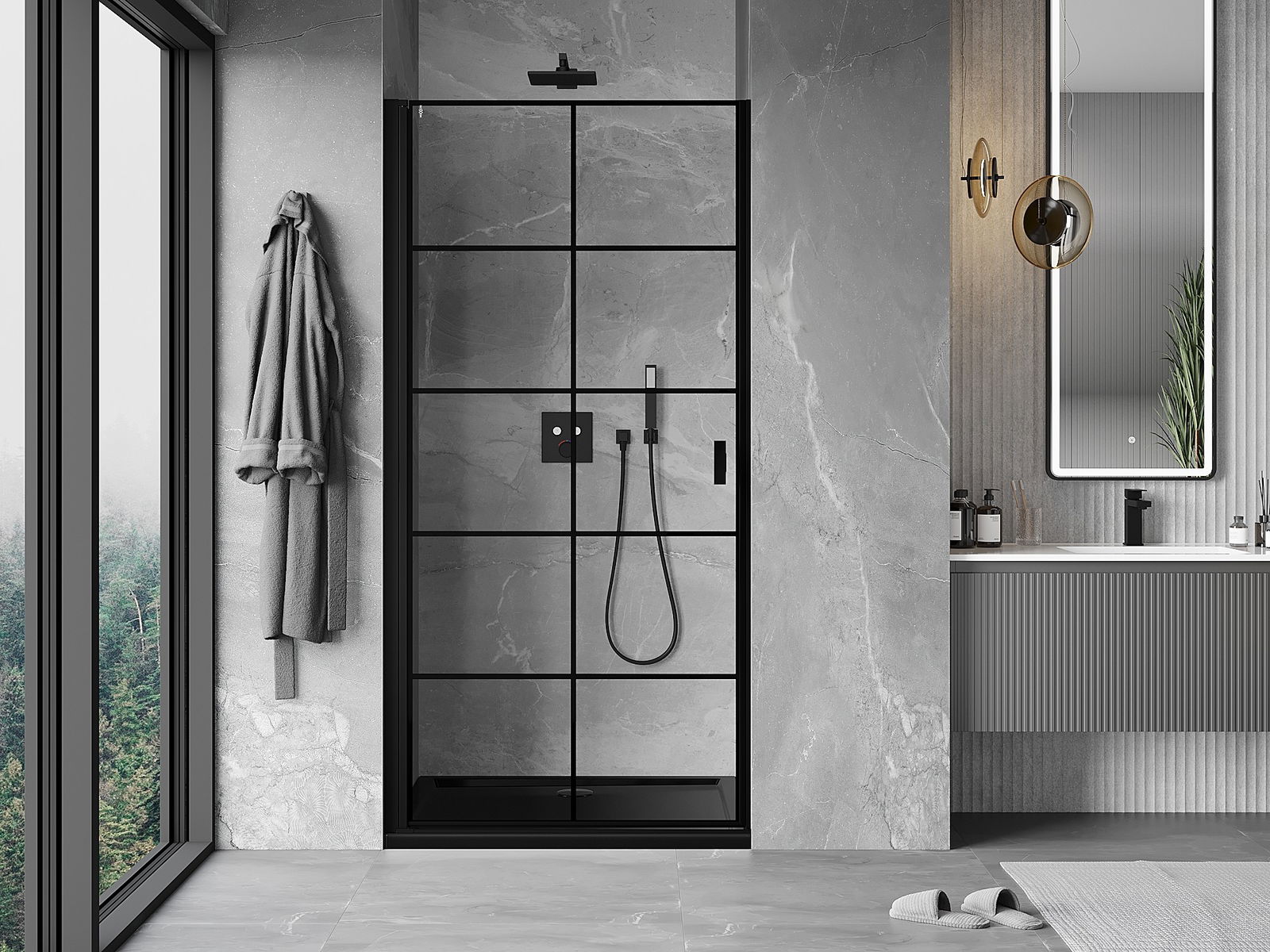 A pega prática e confortável foi feita de metal durável e resistente. A forma moderna combinada com o acabamento ajustado à cor dos perfis confere a todo o conjunto uma aparência moderna e estilosa, realçando a estética de qualquer casa de banho.