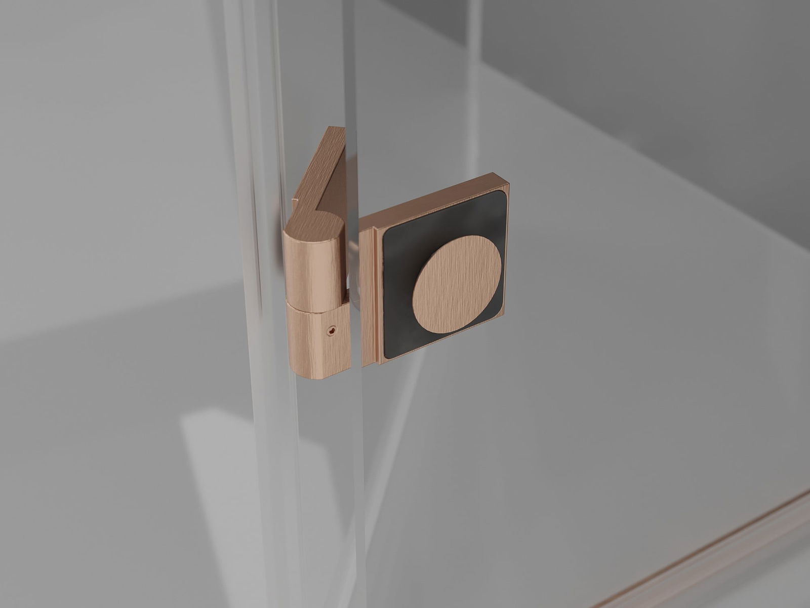 Dobradiças de latão alinhadas com a superfície do vidro