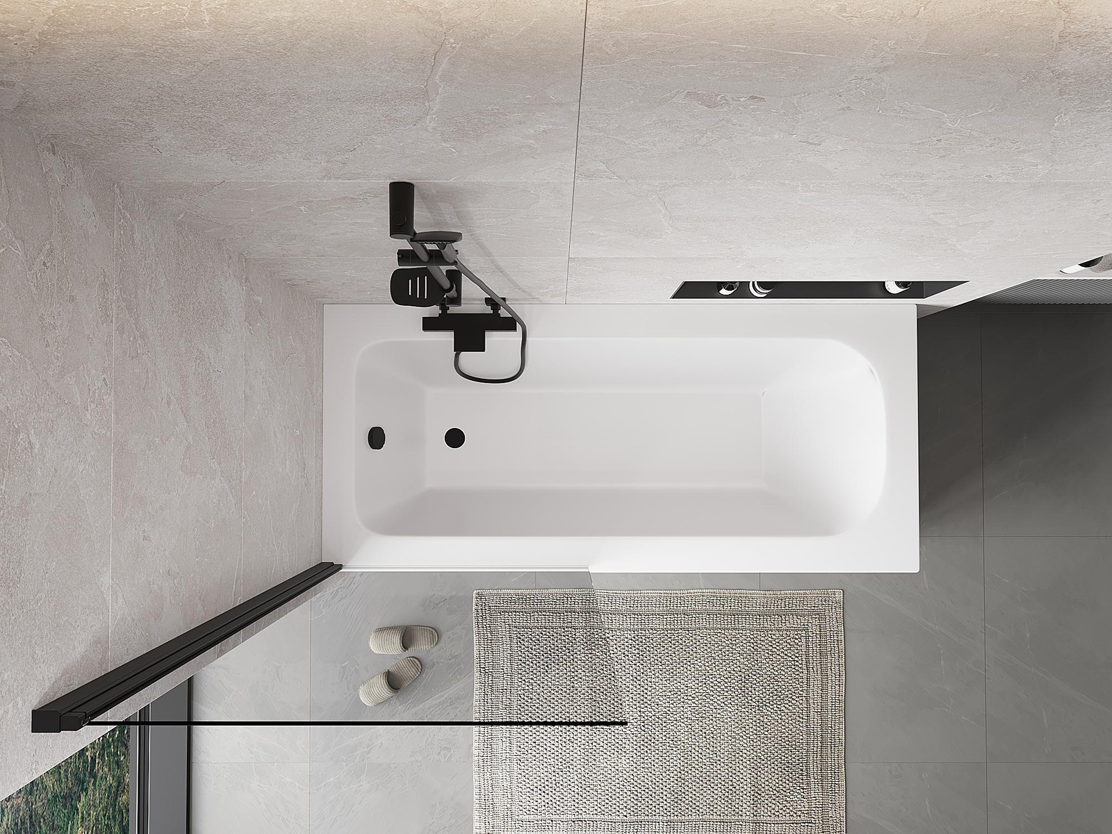 Proteção eficaz contra o derramamento de água durante o banho. O parapeito possui vedações que se ajustam perfeitamente à superfície do vidro e à borda da banheira. Solução funcional que garante segurança e fácil manutenção da limpeza.
