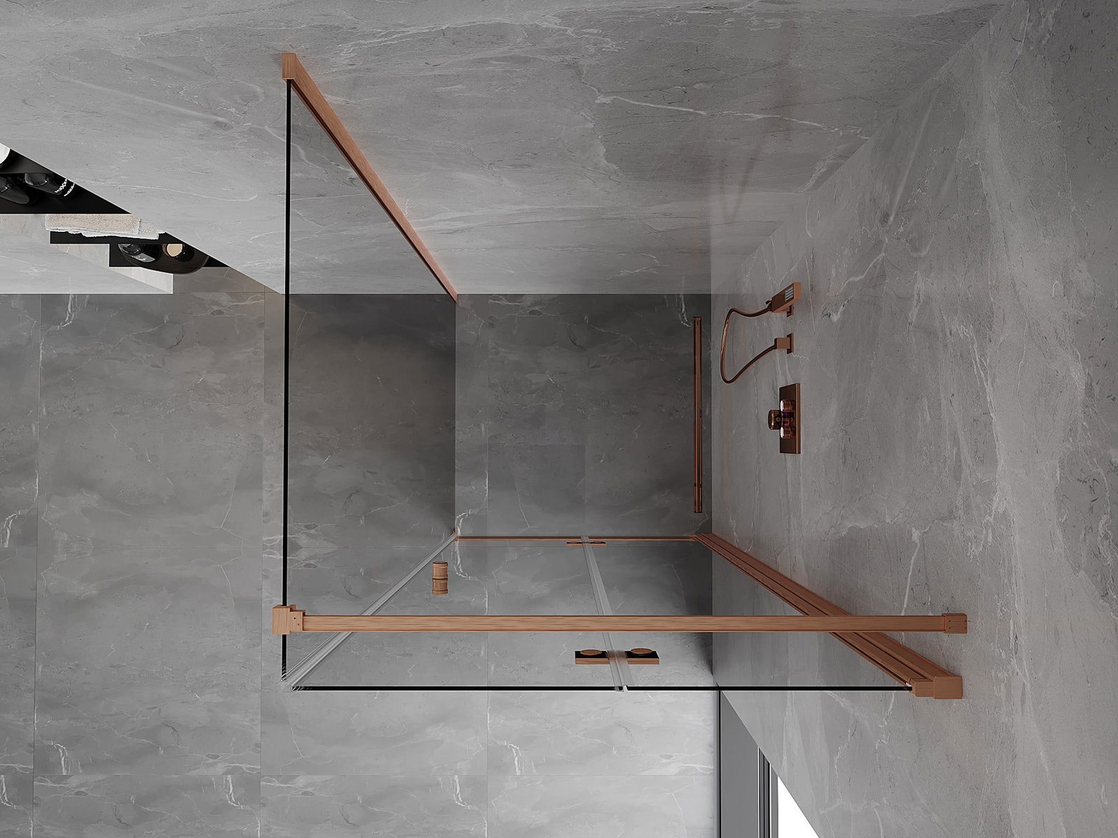 Mexen Mist-F cabine de duche dobrável direita 80 x 80 cm, transparente, cobre escovado - 8A6T-080-080-65-00-P
