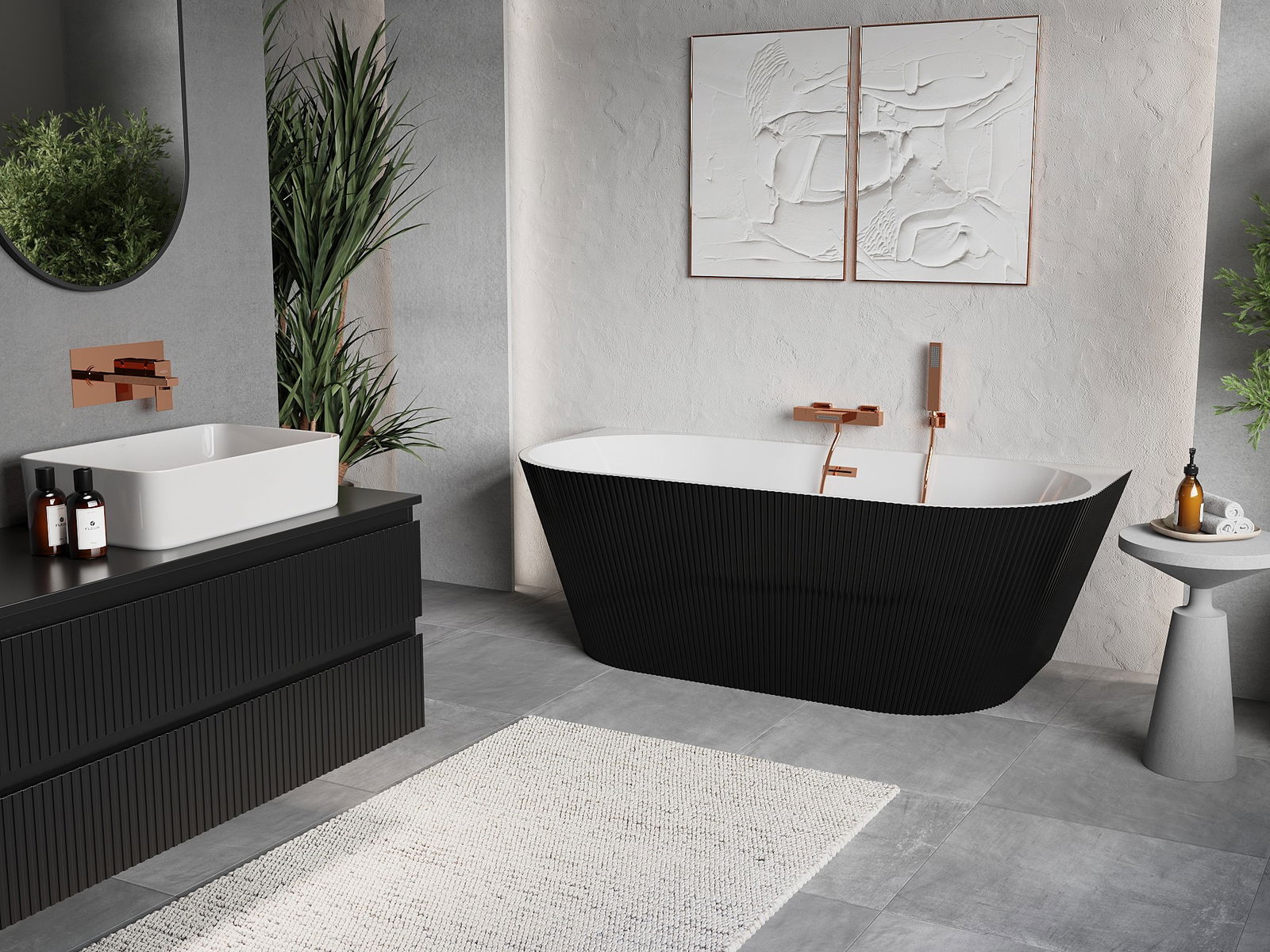 É um material moderno que combina uma aparência elegante com alta durabilidade. É resistente a danos mecânicos, fácil de limpar e agradável ao toque. A forma transparente e a borda fina da banheira conferem-lhe leveza e um caráter único, criando um destaque impressionante na decoração da casa de banho.