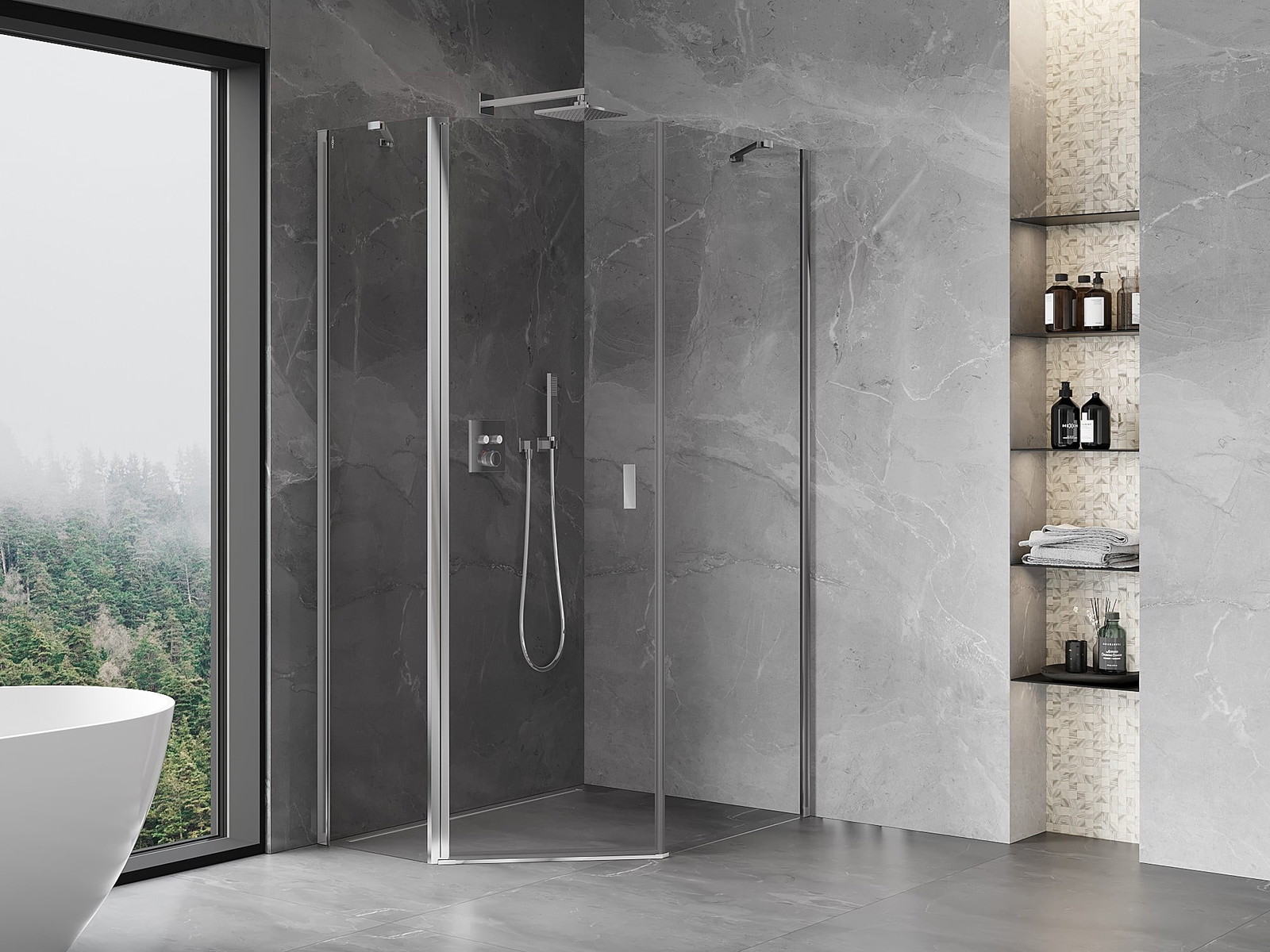 Mexen Mist cabine de duche pentagonal assimétrica de abrir 90 x 100 cm, transparente, cromada - 8A8-090-100-01-00
