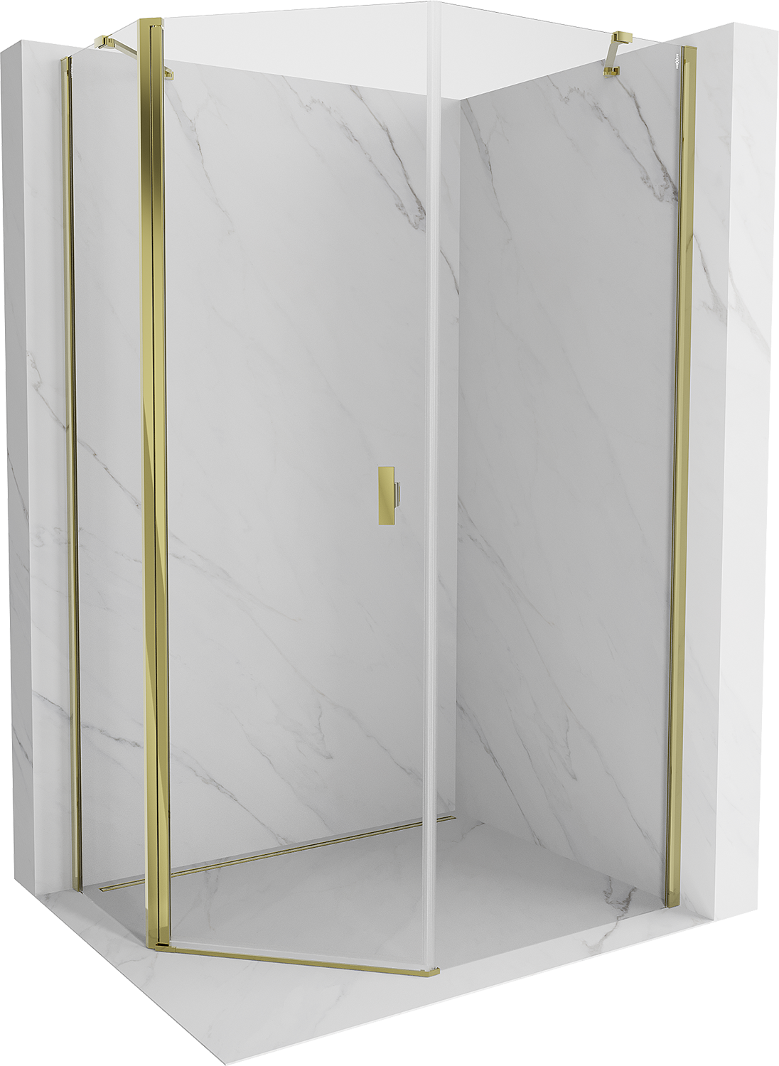 Mexen Mist cabine de duche pentagonal assimétrica com porta de batente 80 x 100 cm, transparente, dourada - 8A8-080-100-50-00