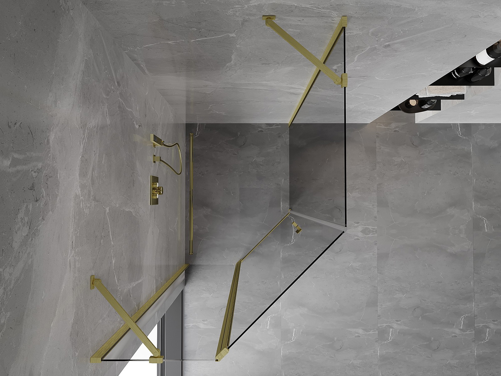 Mexen Mist cabine de duche pentagonal assimétrica de abrir 80 x 90 cm, transparente, dourado escovado - 8A8-080-090-55-00