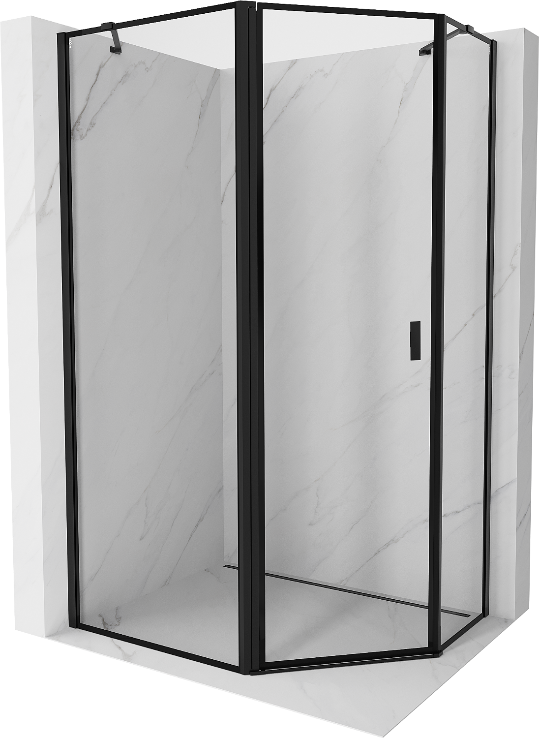 Mexen Mist cabine de duche pentagonal assimétrica com porta de abrir esquerda 100 x 80 cm, estrutura preta, preta