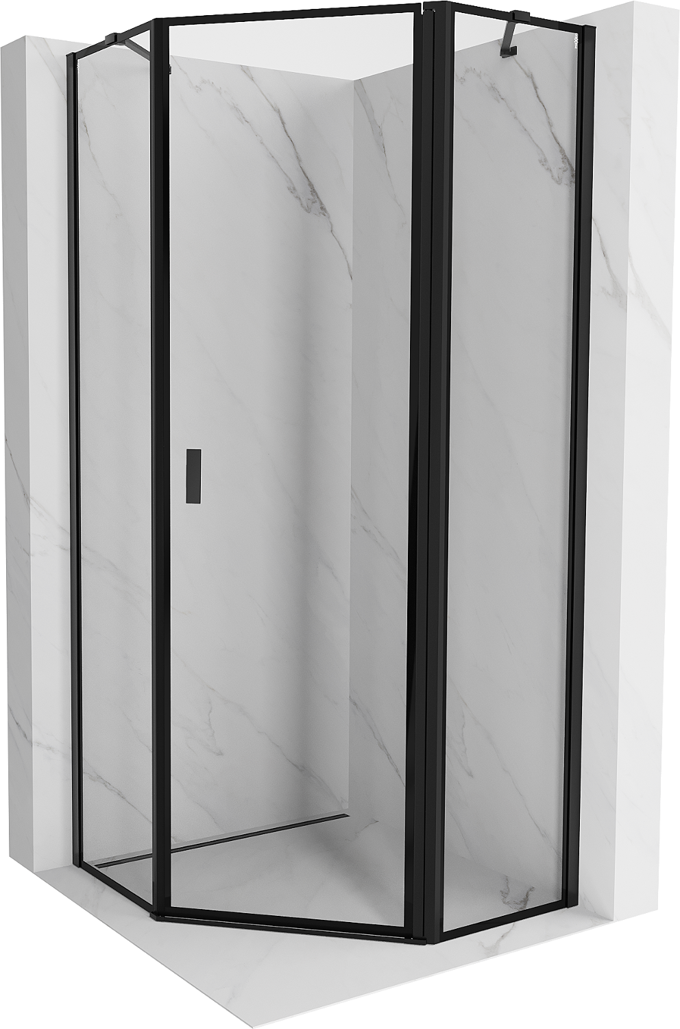 Mexen Mist Cabine de duche pentagonal com porta de abrir à direita 80 x 80 cm, moldura preta, preta - 8A8-080-080-70-70-P