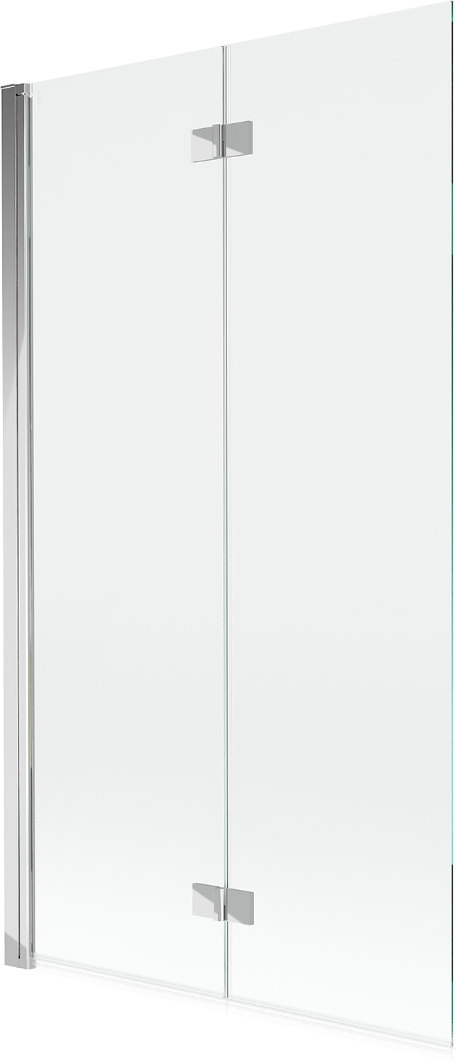 Écrã feito de duas portas com possibilidade de dobrar. Esta solução permite economizar mais espaço na casa de banho e permite o uso livre do espaço restante quando não estamos a usar a área de banho.