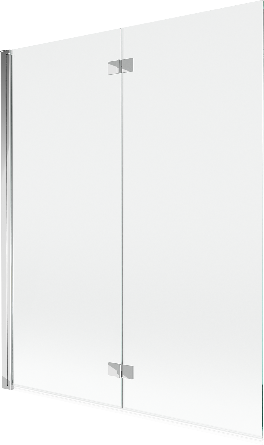 Écrã feito de duas portas com possibilidade de dobrar. Esta solução permite economizar mais espaço na casa de banho e permite o uso livre do espaço restante quando não estamos a usar a área de banho.
