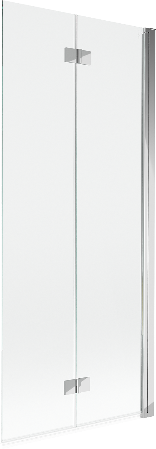 Écrã feito de duas portas com possibilidade de dobrar. Esta solução permite economizar mais espaço na casa de banho e permite o uso livre do espaço restante quando não estamos a usar a área de banho.
