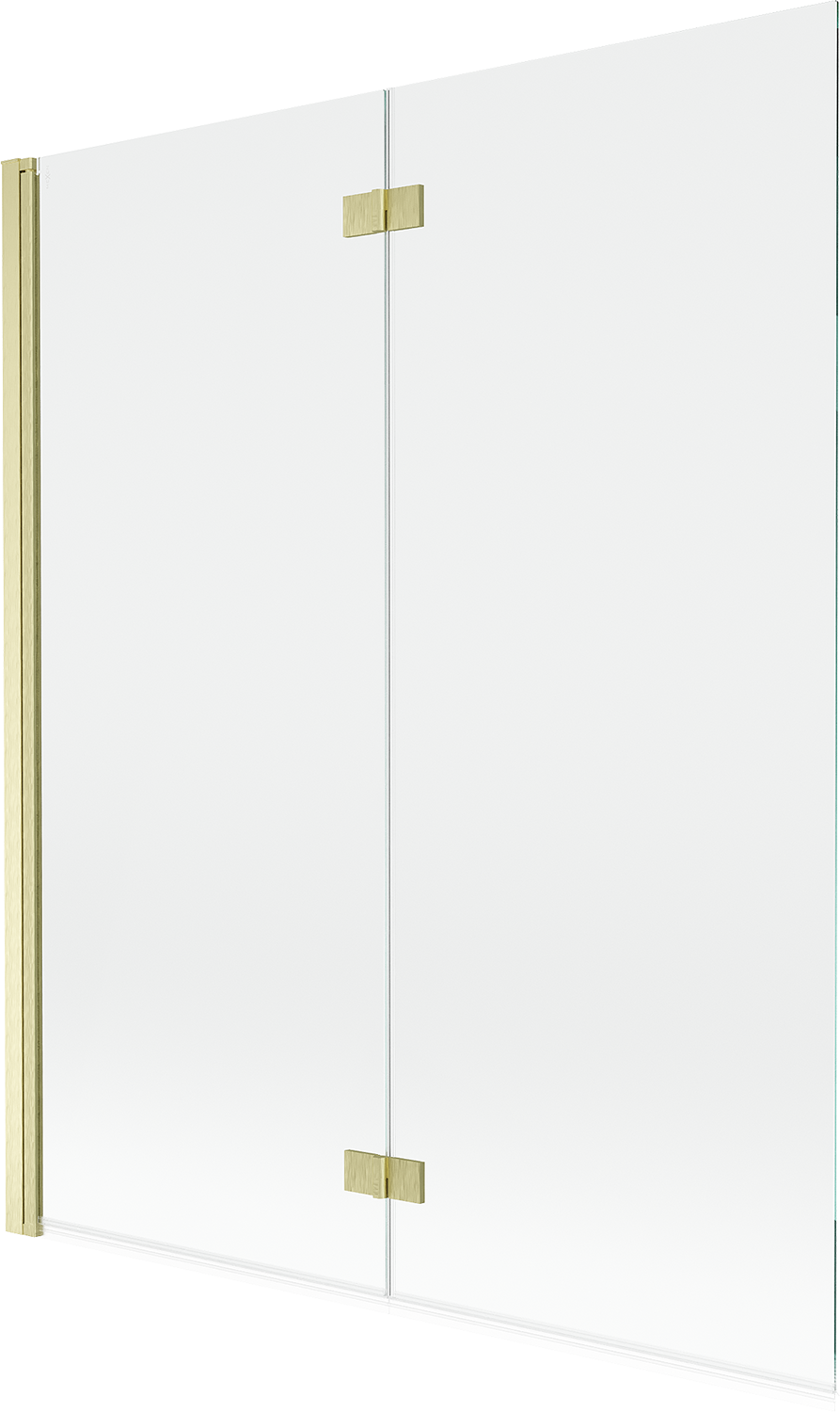 Écrã feito de duas portas com possibilidade de dobrar. Esta solução permite economizar mais espaço na casa de banho e permite o uso livre do espaço restante quando não estamos a usar a área de banho.