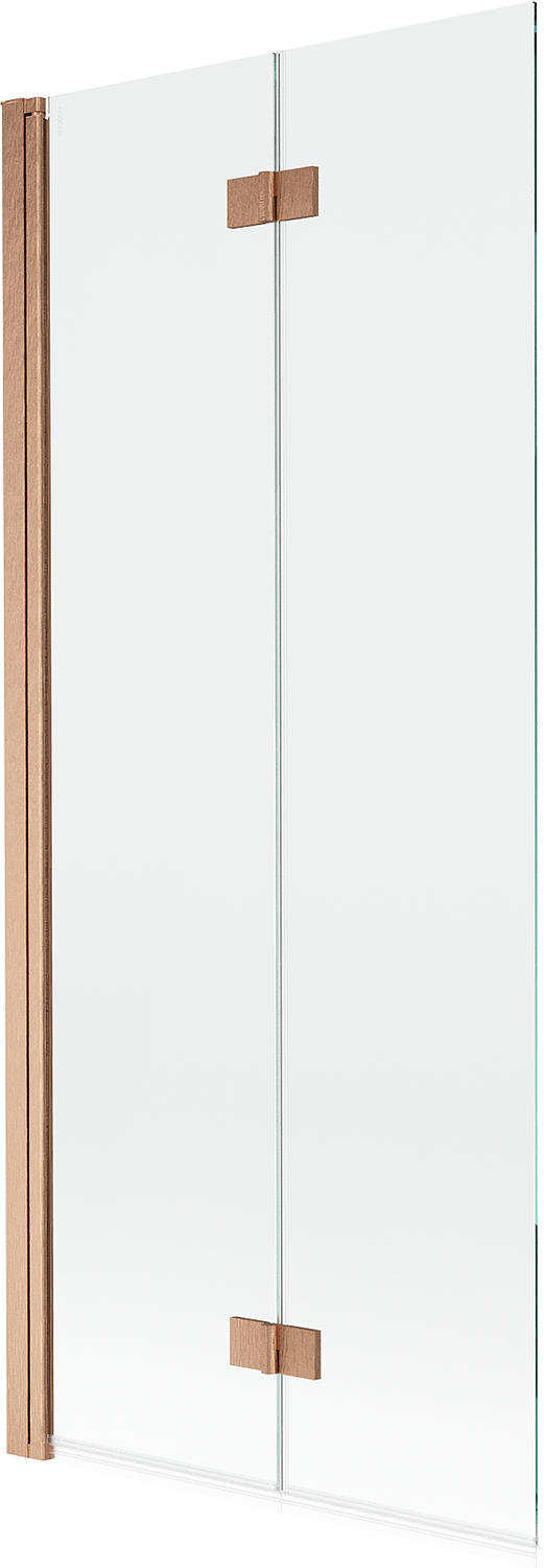 Écrã feito de duas portas com possibilidade de dobrar. Esta solução permite economizar mais espaço na casa de banho e permite o uso livre do espaço restante quando não estamos a usar a área de banho.