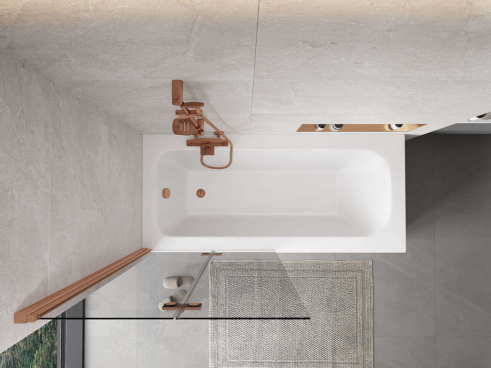 Proteção eficaz contra o derramamento de água durante o banho. O parapeito possui vedações que se ajustam perfeitamente à superfície do vidro e à borda da banheira. Solução funcional que garante segurança e fácil manutenção da limpeza.