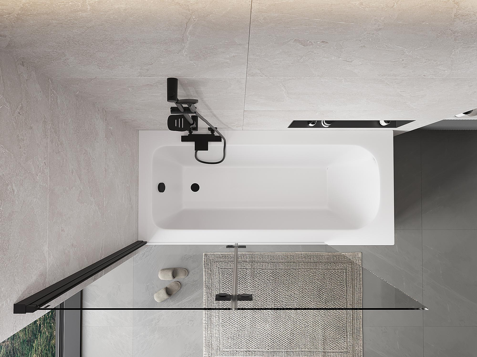 Proteção eficaz contra o derramamento de água durante o banho. O parapeito possui vedações que se ajustam perfeitamente à superfície do vidro e à borda da banheira. Solução funcional que garante segurança e fácil manutenção da limpeza.
