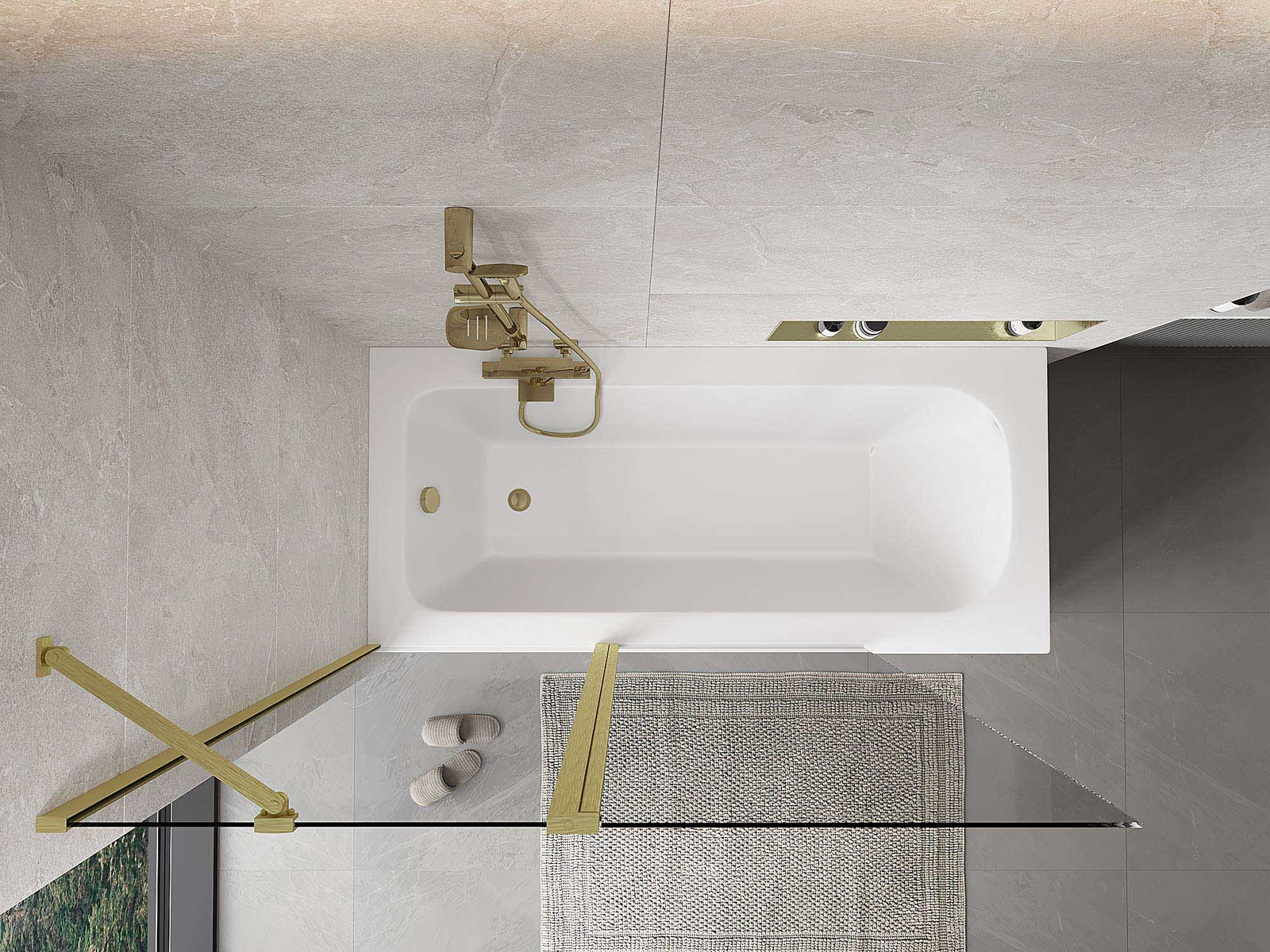 Proteção eficaz contra o derramamento de água durante o banho. O parapeito possui vedações que se ajustam perfeitamente à superfície do vidro e à borda da banheira. Solução funcional que garante segurança e fácil manutenção da limpeza.
