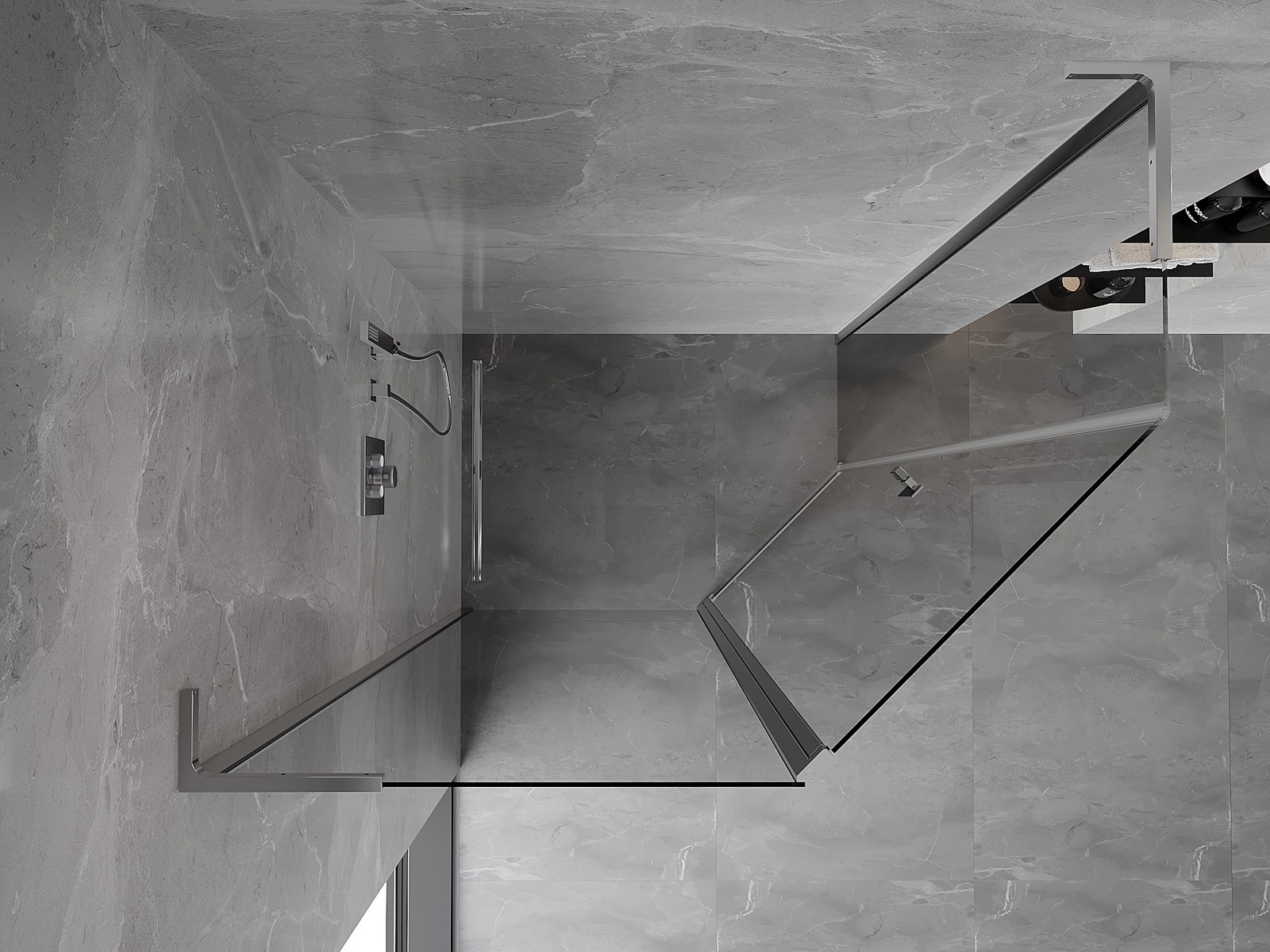 Mexen Mist L cabine de duche pentagonal assimétrica com porta de abrir 100 x 80 cm, transparente, cromada - 8A8L-100-080-01-00