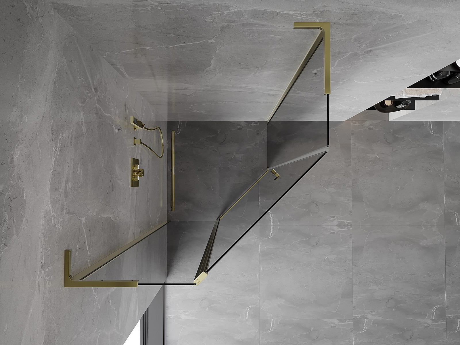 Mexen Mist L cabine de duche pentagonal com porta de abrir 80 x 80 cm, transparente, dourada - 8A8L-080-080-50-00