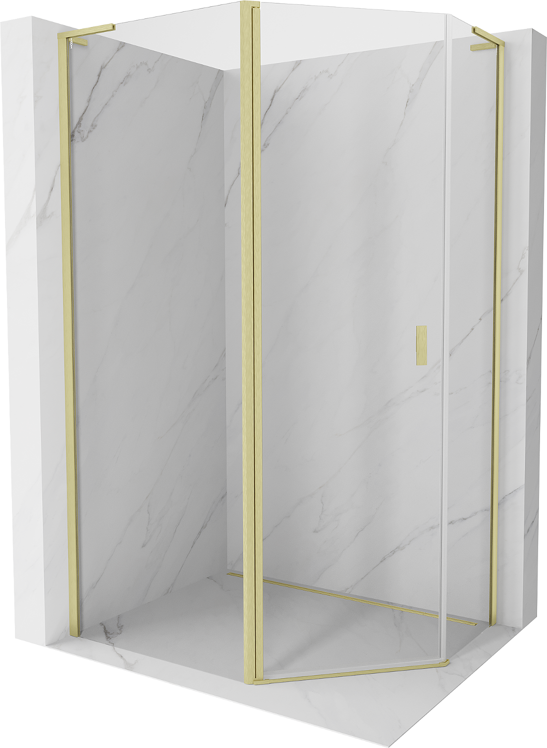 Mexen Mist L Cabine de duche pentagonal assimétrica de abrir 90x80 cm, transparente, dourada escovada - 8A8L-090-080-55-00