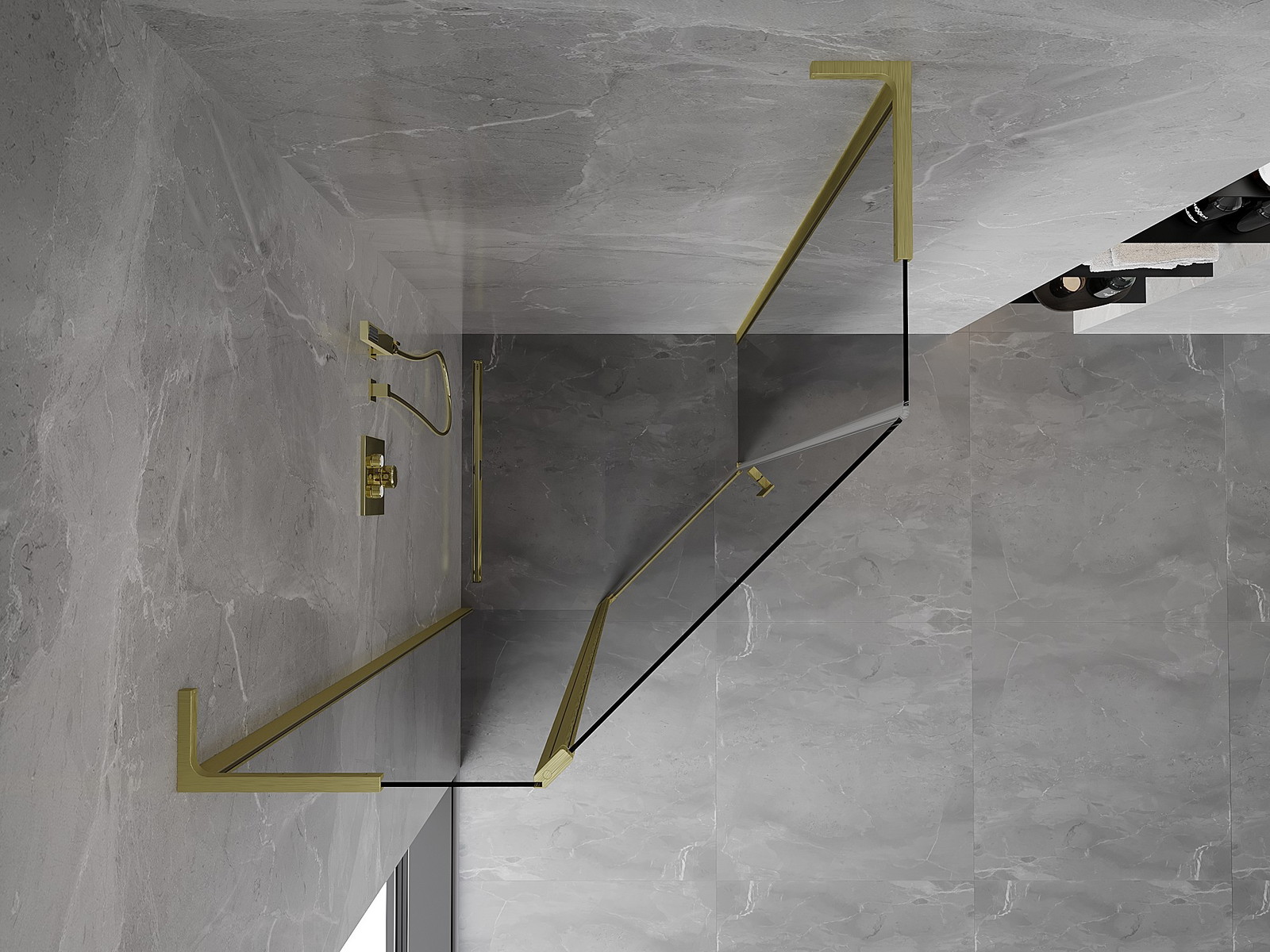 Mexen Mist L cabine de duche pentagonal de batente 90 x 90 cm, transparente, dourado escovado - 8A8L-090-090-55-00
