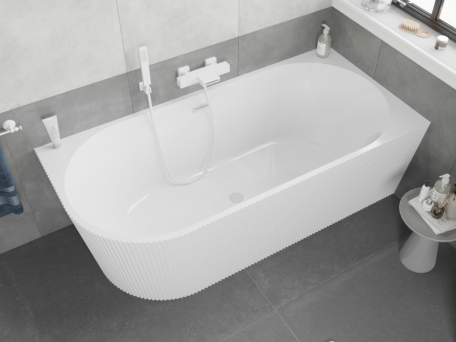 Mexen Silo banheira independente de canto, direita, ranhurada 150 x 75 cm, branca, transbordamento branco - 52891507500P-20