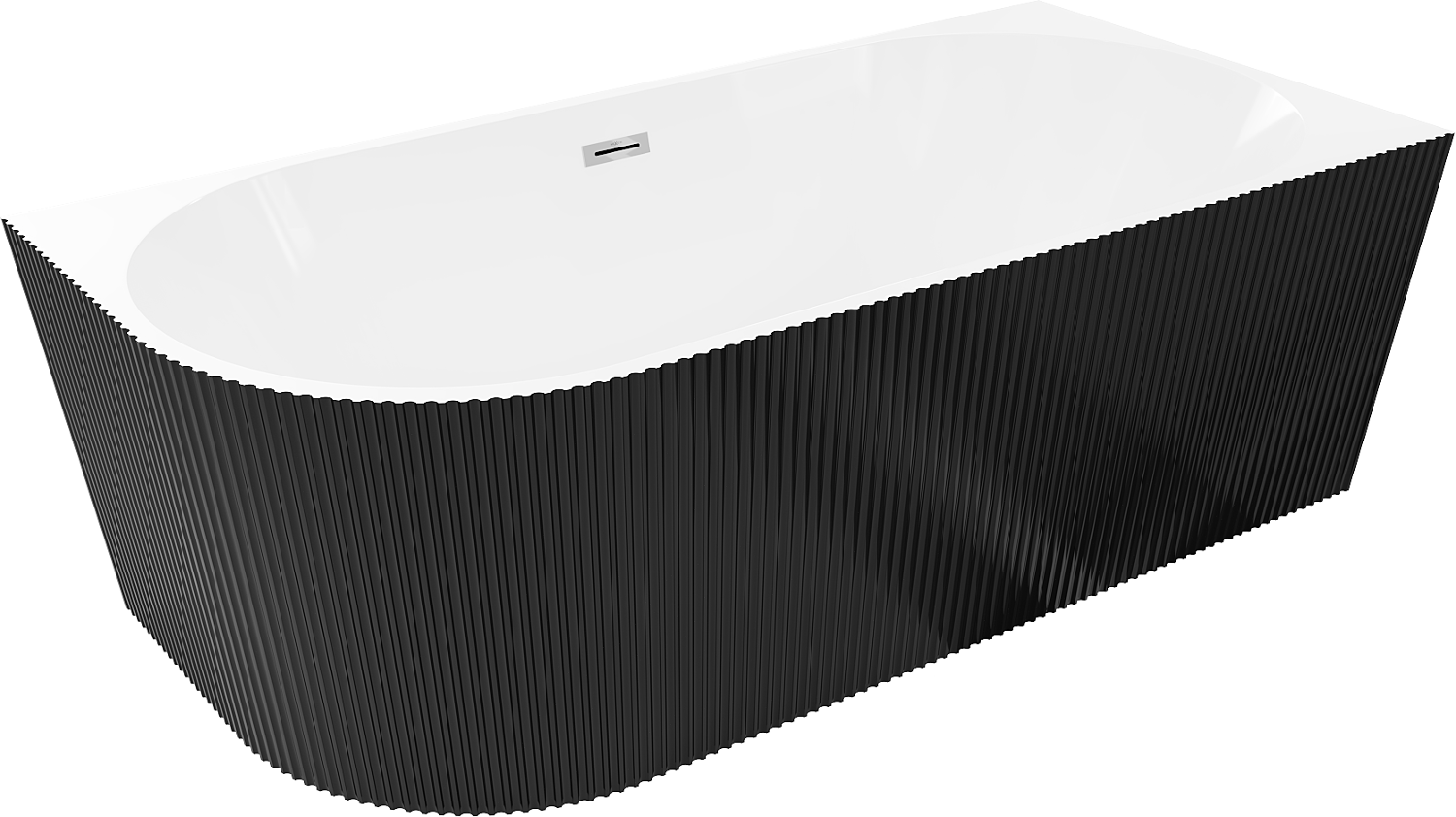 Mexen Silo banheira independente de canto direito canelada 150 x 75 cm, branco/preto, transbordamento cromado - 52891507575P-01