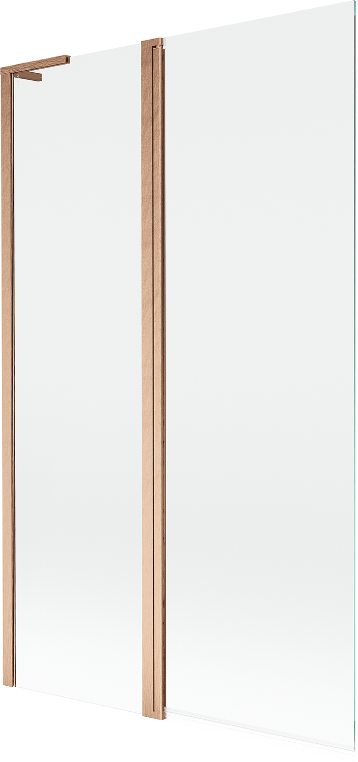 Écrã feito de duas portas com possibilidade de dobrar. Esta solução permite economizar mais espaço na casa de banho e permite o uso livre do espaço restante quando não estamos a usar a área de banho.