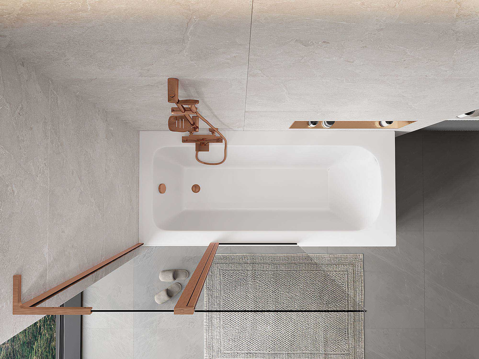 Proteção eficaz contra o derramamento de água durante o banho. O parapeito possui vedações que se ajustam perfeitamente à superfície do vidro e à borda da banheira. Solução funcional que garante segurança e fácil manutenção da limpeza.
