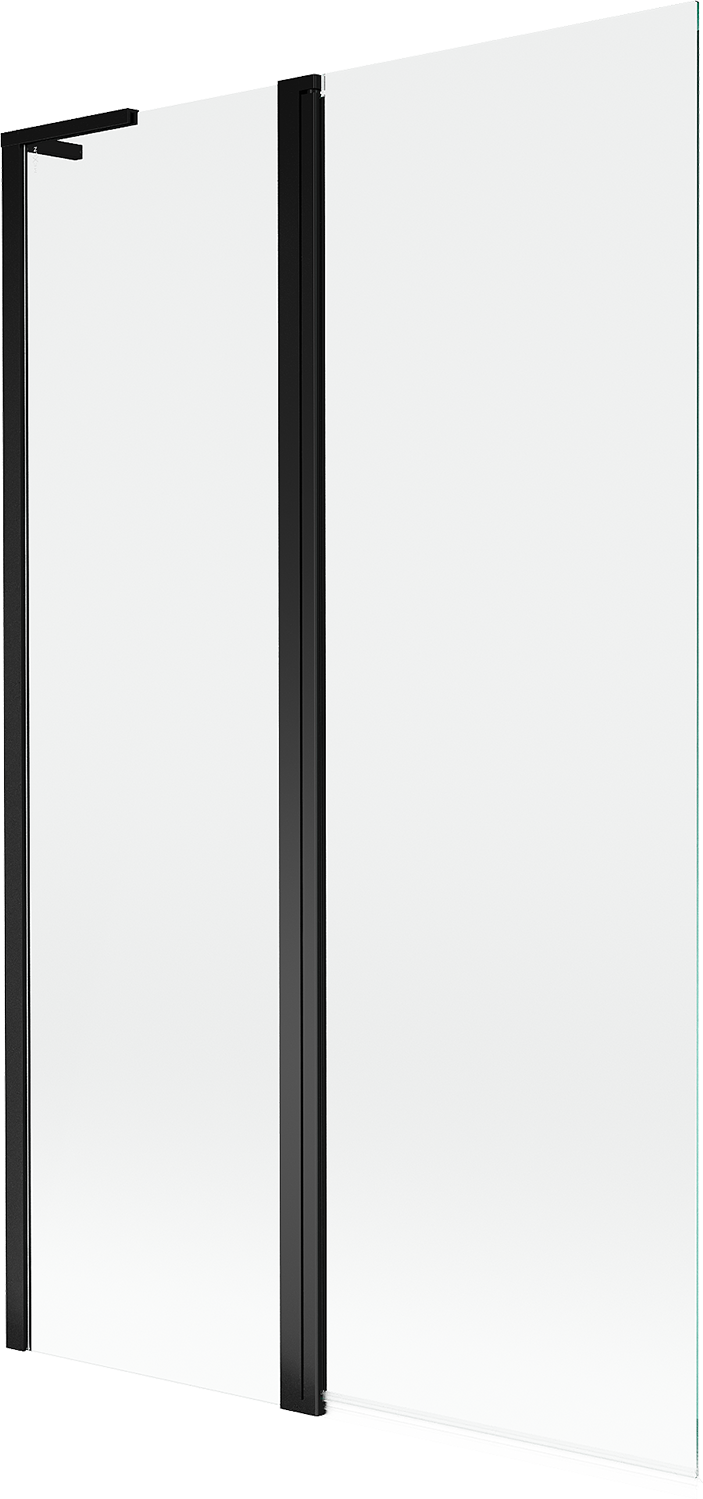 Écrã feito de duas portas com possibilidade de dobrar. Esta solução permite economizar mais espaço na casa de banho e permite o uso livre do espaço restante quando não estamos a usar a área de banho.