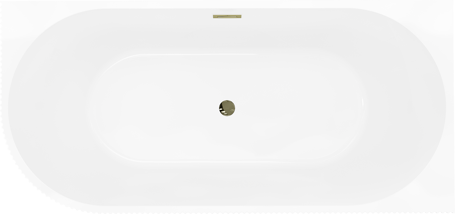Mexen Silo banheira de canto independente, direita, com estrutura canelada 170 x 80 cm, branca/preta, transbordo dourado