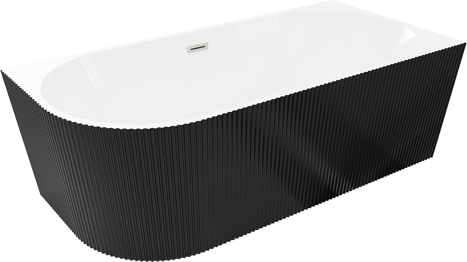 Mexen Silo banheira independente de canto direito estriada 170 x 80 cm, branco/preto, transbordo níquel escovado