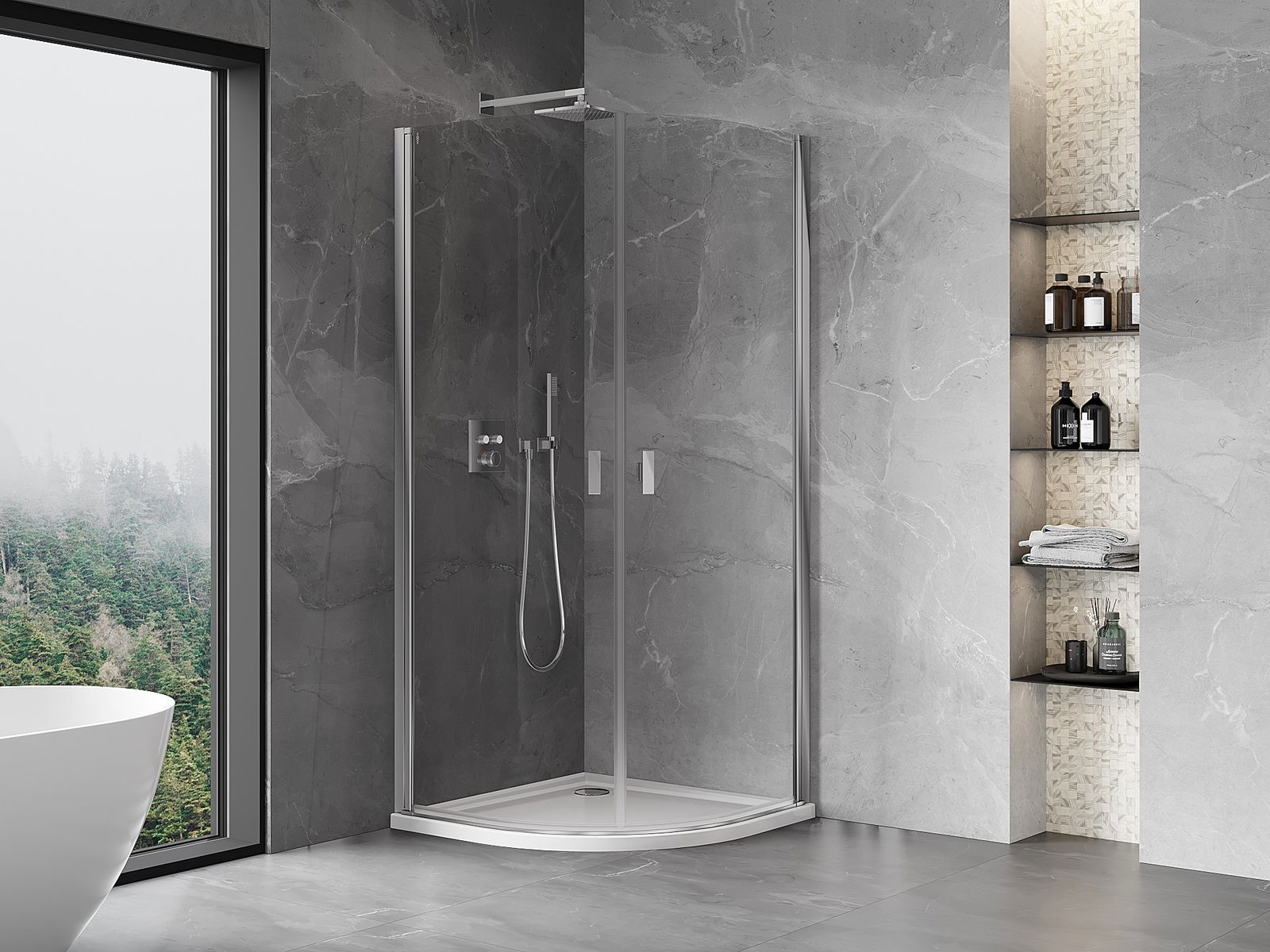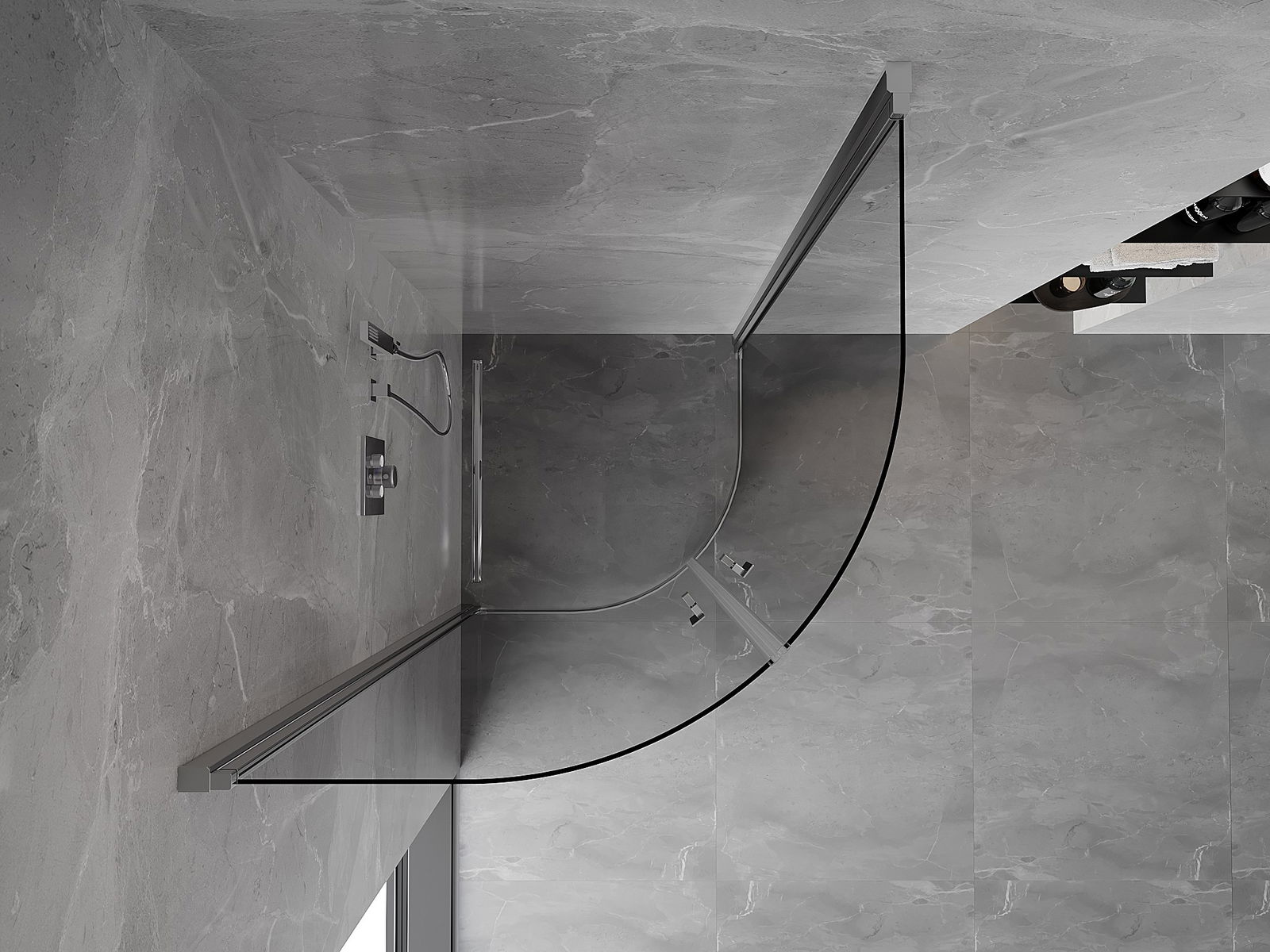 A pega prática e confortável foi feita de metal durável e resistente. A forma moderna combinada com o acabamento ajustado à cor dos perfis confere a todo o conjunto uma aparência moderna e estilosa, realçando a estética de qualquer casa de banho.