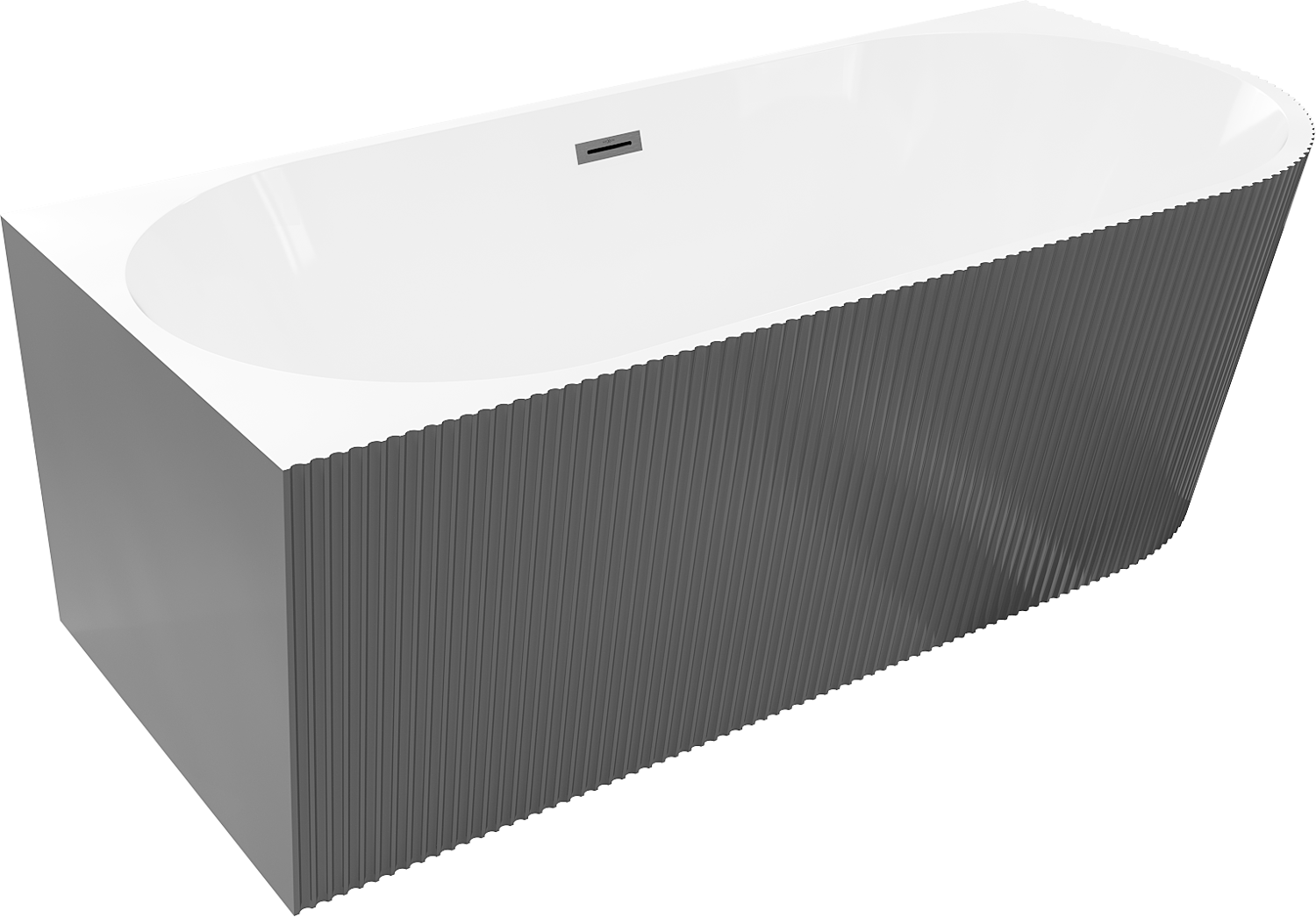 Mexen Silo banheira independente de canto esquerda canelada 150 x 75 cm, branco/cinza, transbordar gun gray escovado