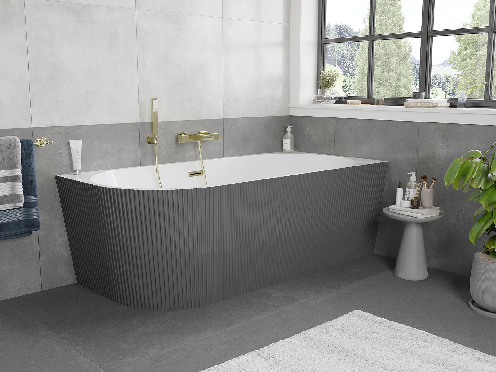 Mexen Silo banheira autoportante de canto direita canelada 170 x 80 cm, branca/cinzenta, extravasor dourado - 52891708062P-50