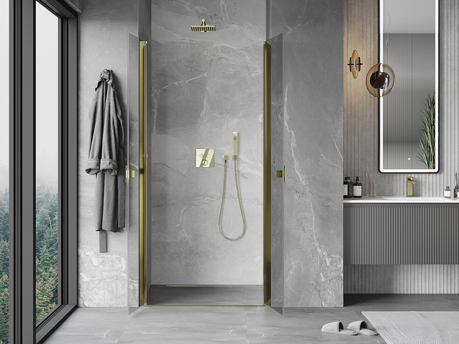 A pega prática e confortável foi feita de metal durável e resistente. A forma moderna combinada com o acabamento ajustado à cor dos perfis confere a todo o conjunto uma aparência moderna e estilosa, realçando a estética de qualquer casa de banho.