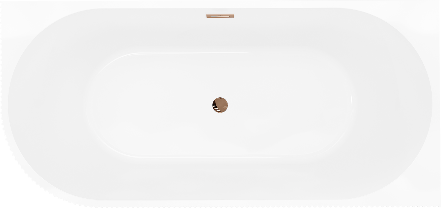 Mexen Silo banheira independente de canto direita estriada 170 x 80 cm, branca/cinza, transbordamento ouro rosa