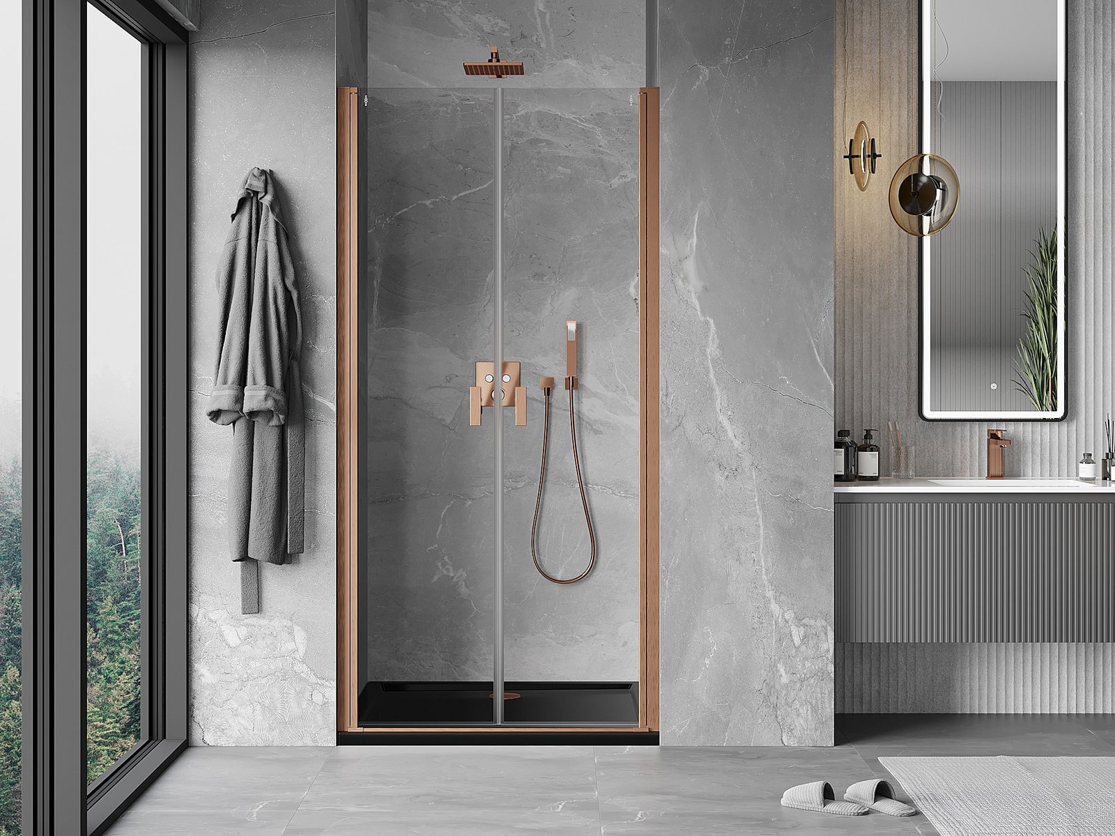 A pega prática e confortável foi feita de metal durável e resistente. A forma moderna combinada com o acabamento ajustado à cor dos perfis confere a todo o conjunto uma aparência moderna e estilosa, realçando a estética de qualquer casa de banho.