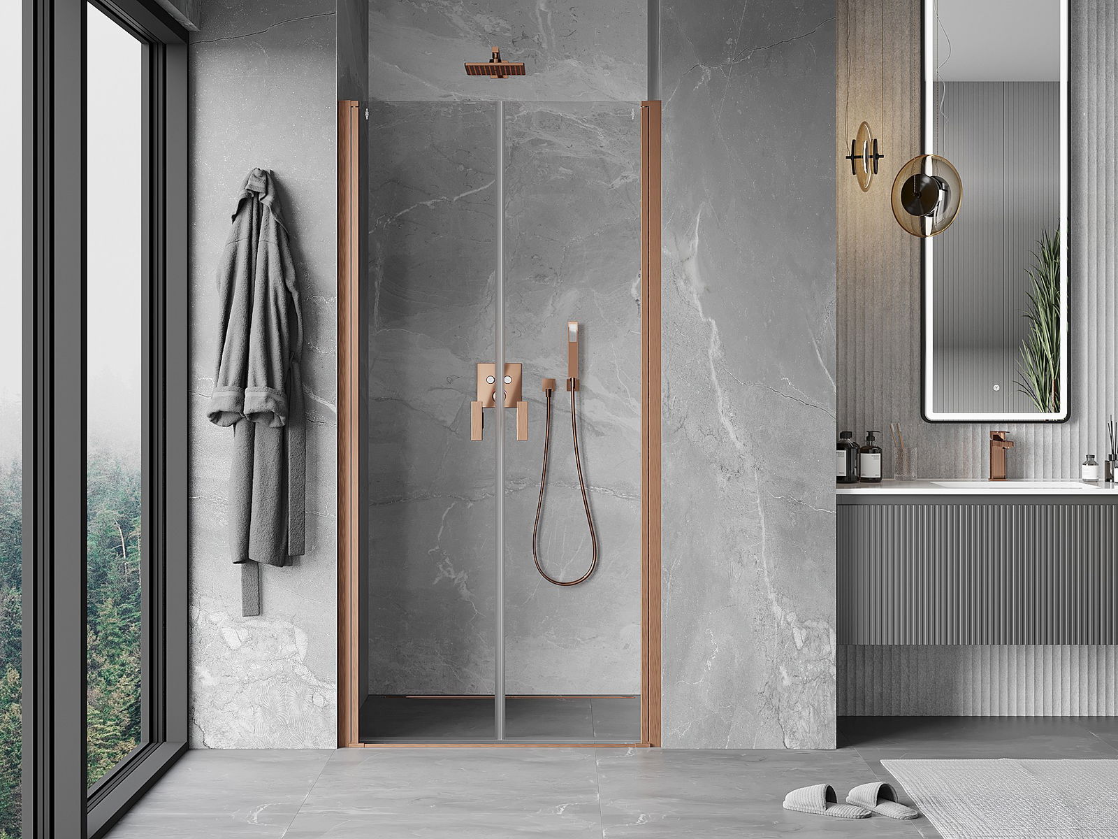 Mexen Mist portas de duche de abertura 120 cm, transparente, cobre escovado - 8A7-120-000-65-00