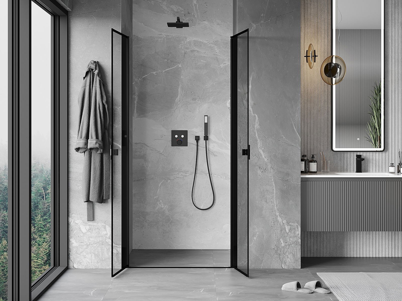 A pega prática e confortável foi feita de metal durável e resistente. A forma moderna combinada com o acabamento ajustado à cor dos perfis confere a todo o conjunto uma aparência moderna e estilosa, realçando a estética de qualquer casa de banho.