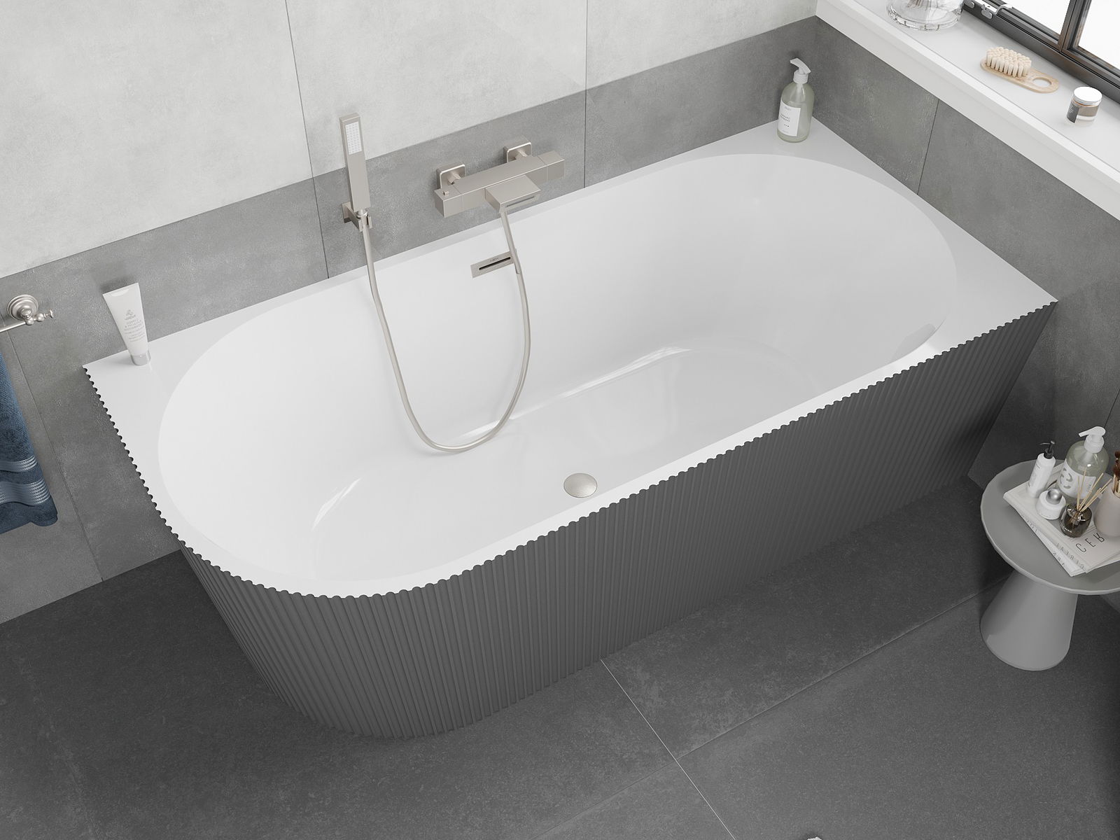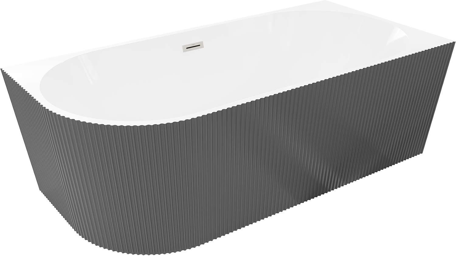 Mexen Silo banheira independente de canto direito canelada 170 x 80 cm, branco/cinza, transbordamento de níquel escovado