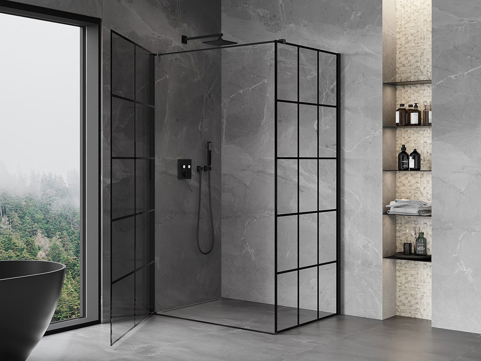 A pega prática e confortável foi feita de metal durável e resistente. A forma moderna combinada com o acabamento ajustado à cor dos perfis confere a todo o conjunto uma aparência moderna e estilosa, realçando a estética de qualquer casa de banho.