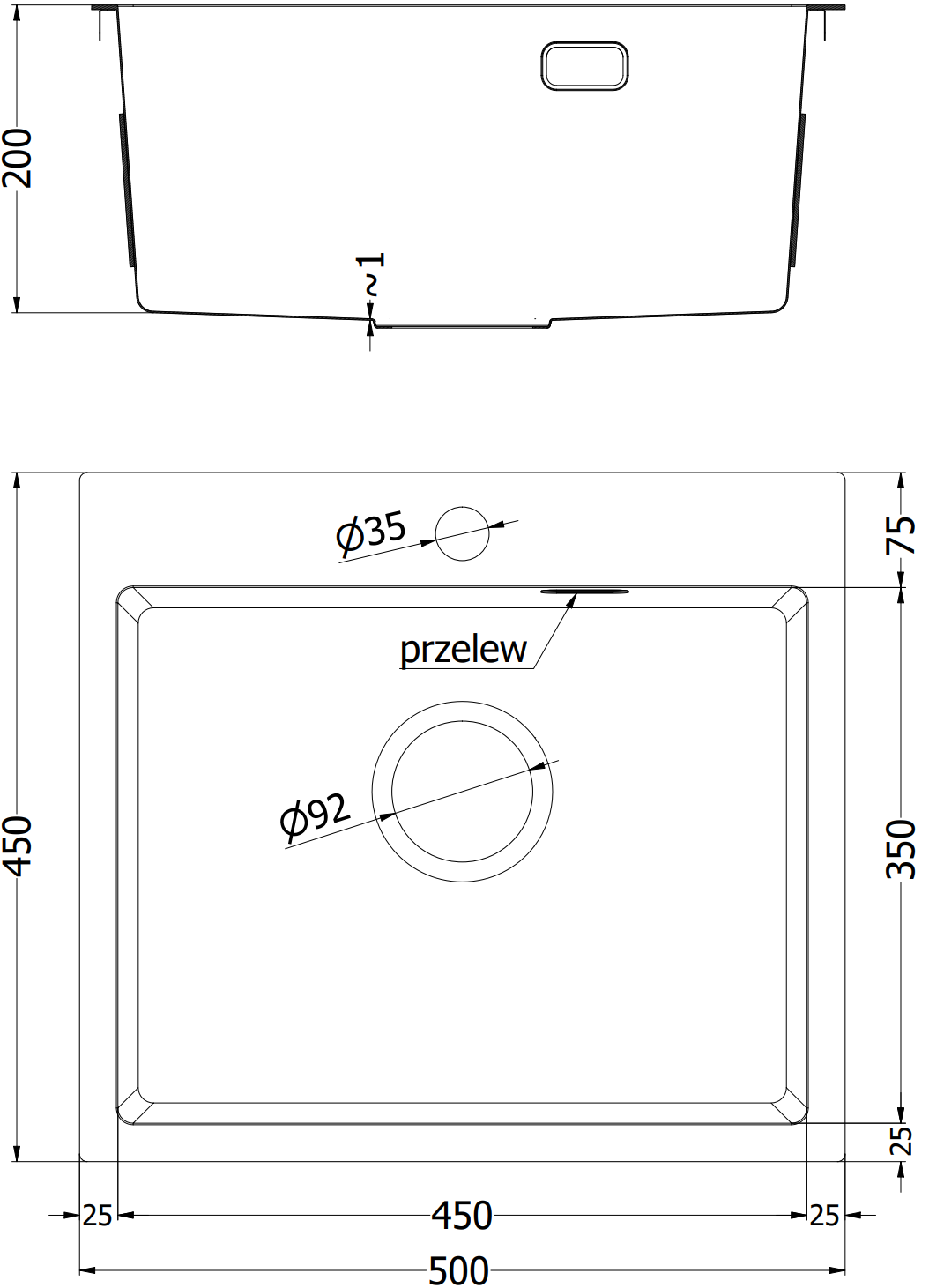 Mexen Solix lava-loiça de aço inoxidável de 1 bacia 500 x 450 mm, inox - 6402501000-01