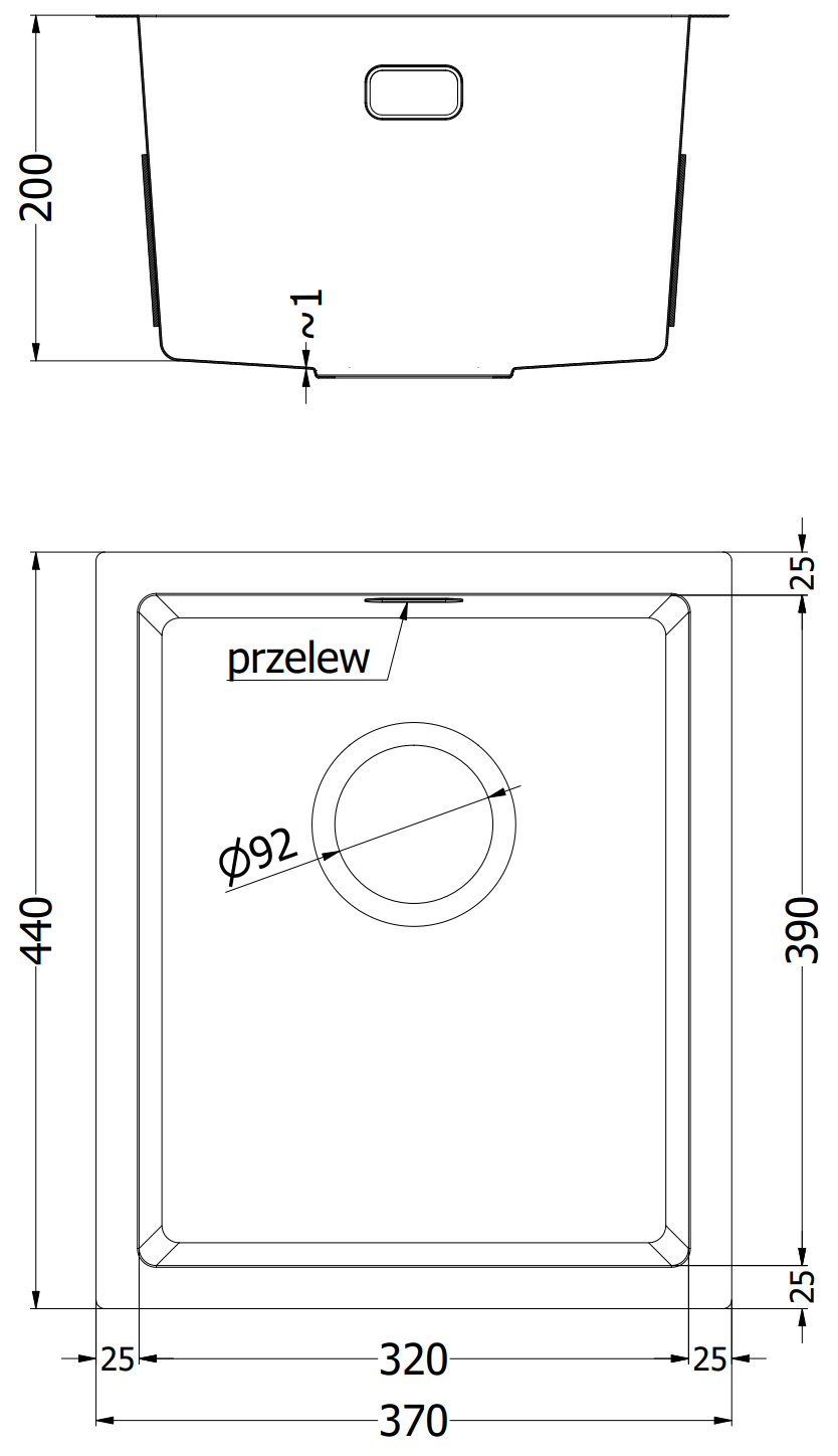 Mexen Trixo lava-loiça em aço inoxidável 1-bacia 370 x 440 mm, inox - 6412371000-01