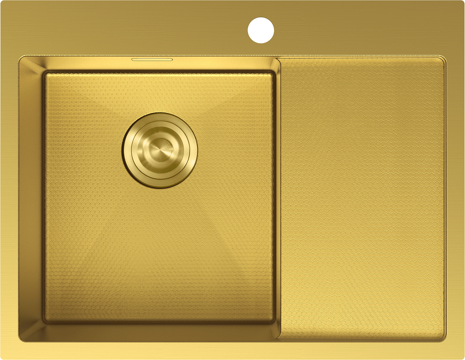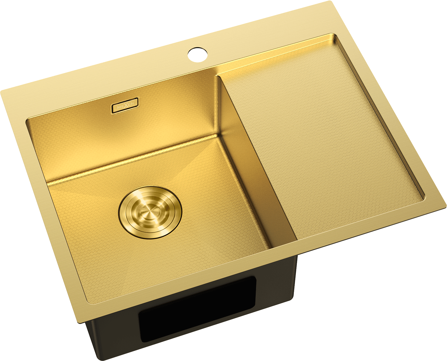Mexen Exar lava-louça de aço inoxidável de 1 bacia com escorredor à esquerda 620 x 480 mm, dourado HC - 6431621005L-55HC