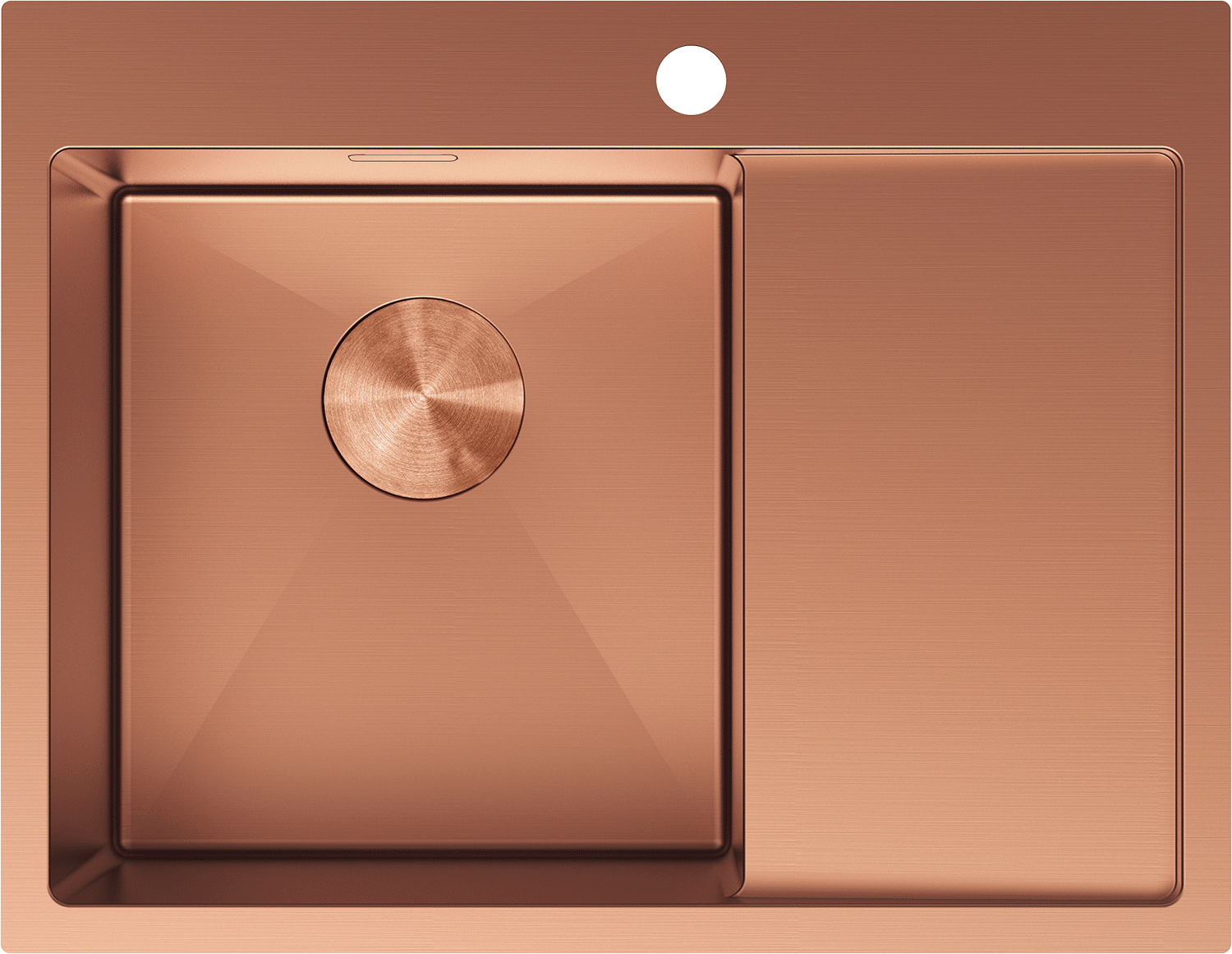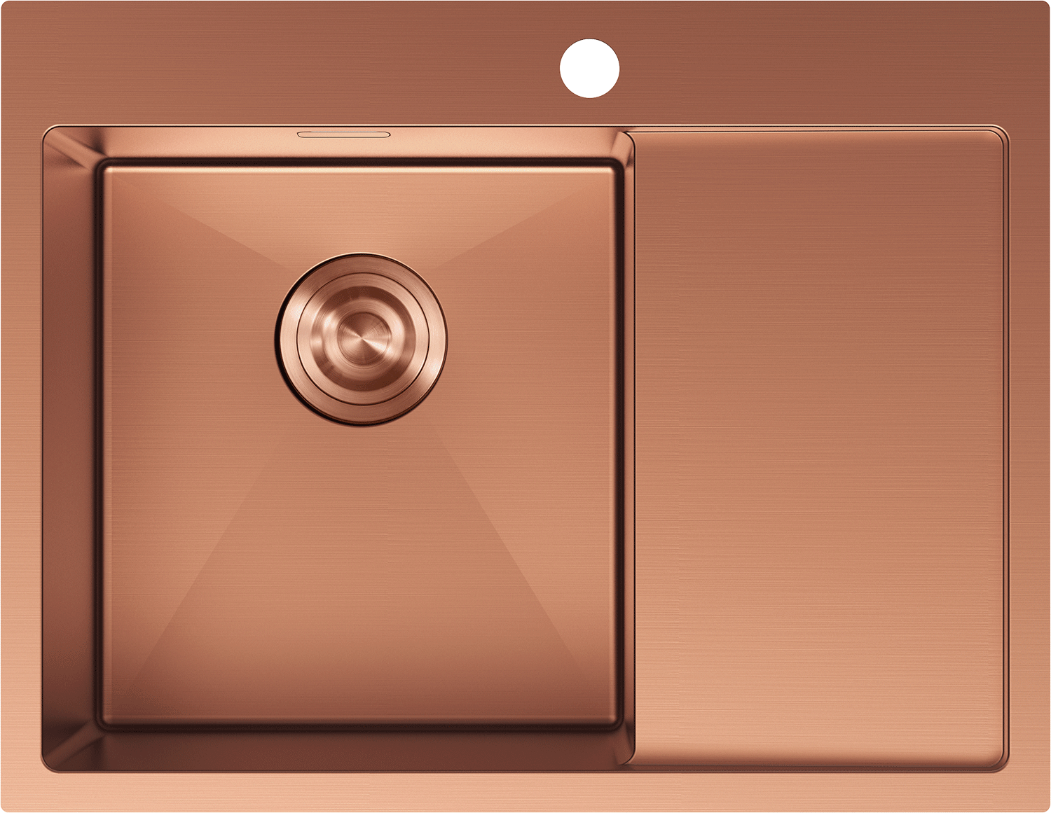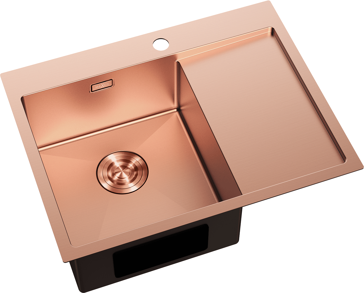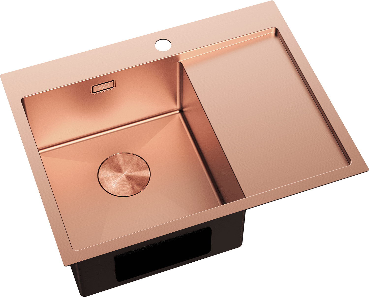 Mexen Exar lava-loiça de aço inoxidável, 1 cuba com escorredor esquerdo, 620 x 480 mm, cobre - 6431621005L-65