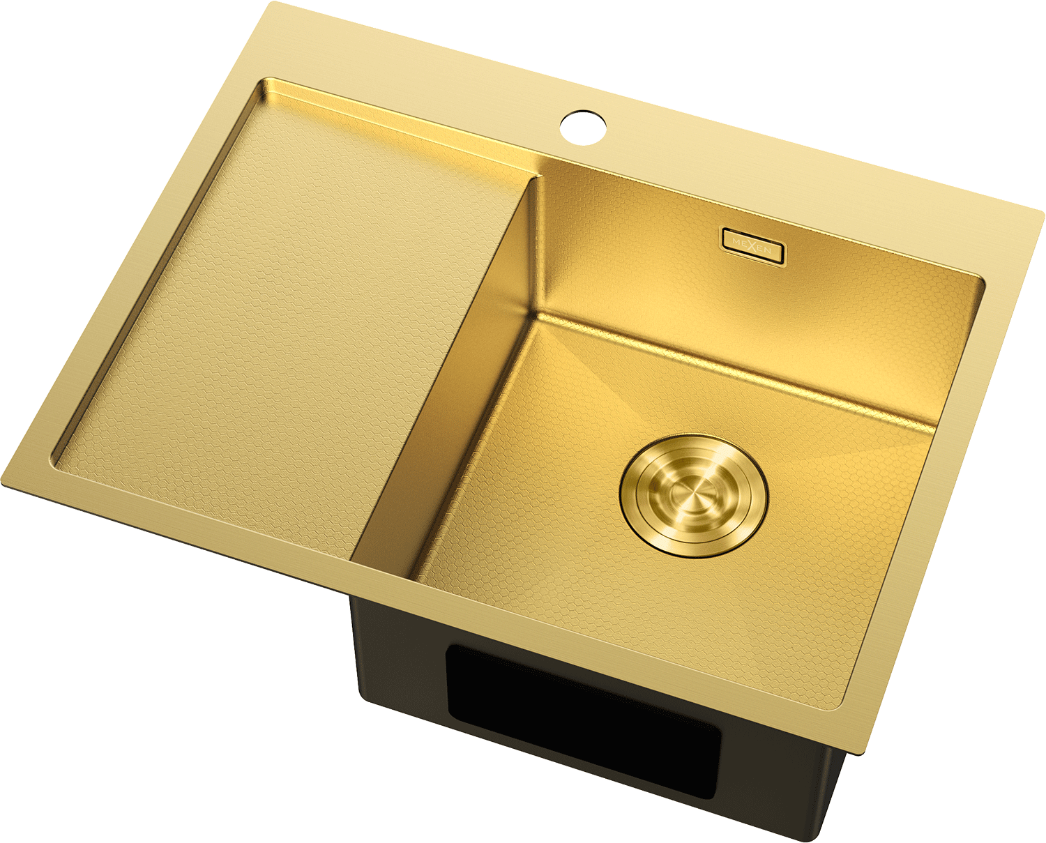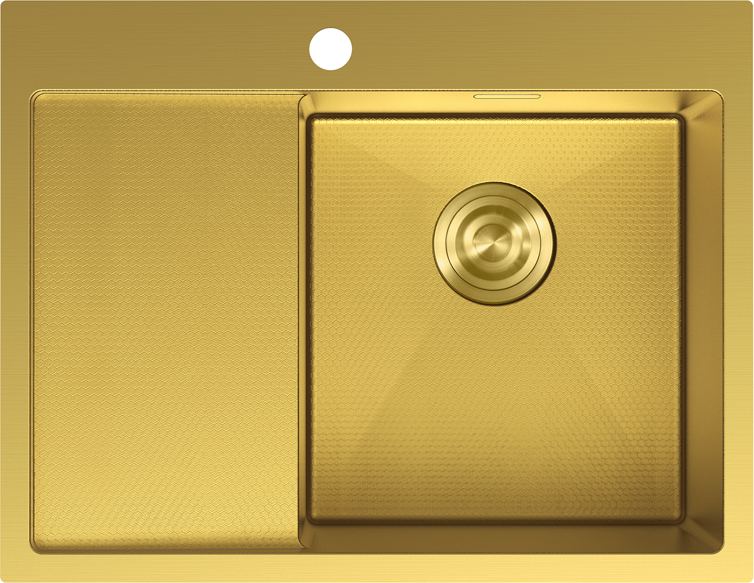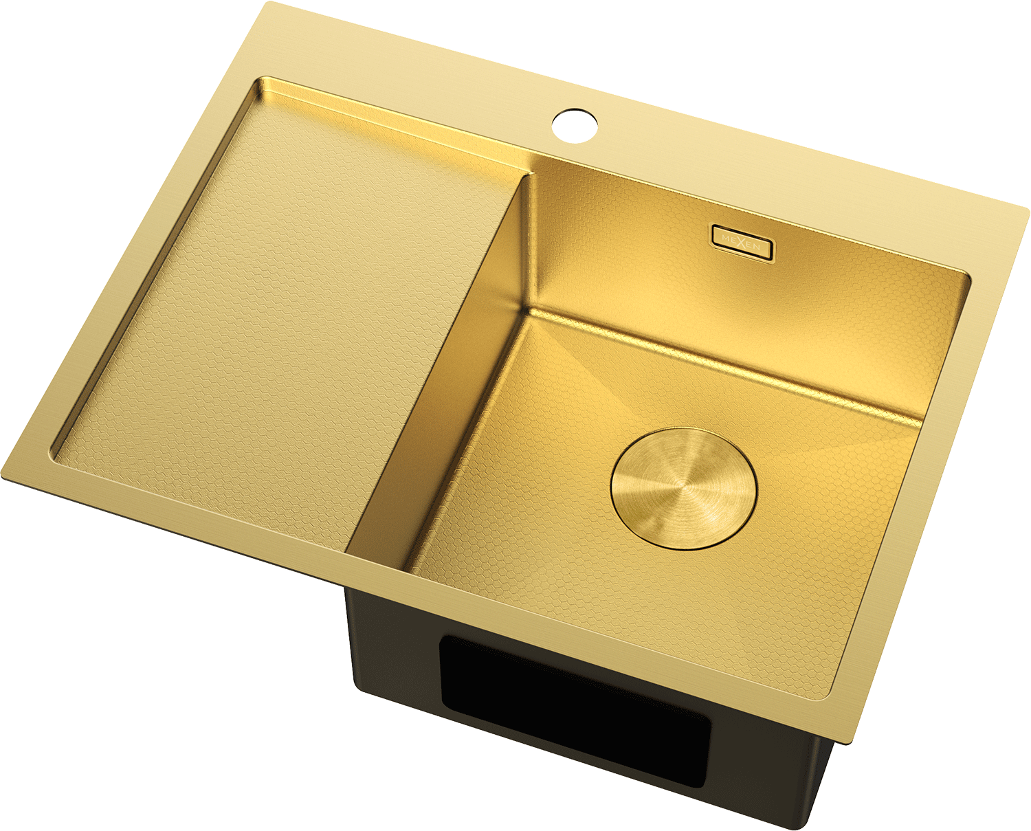Mexen Exar lava-louça de aço inoxidável 1-cuba com escorredor direito 620 x 480 mm, dourado HC - 6432621005P-55HC