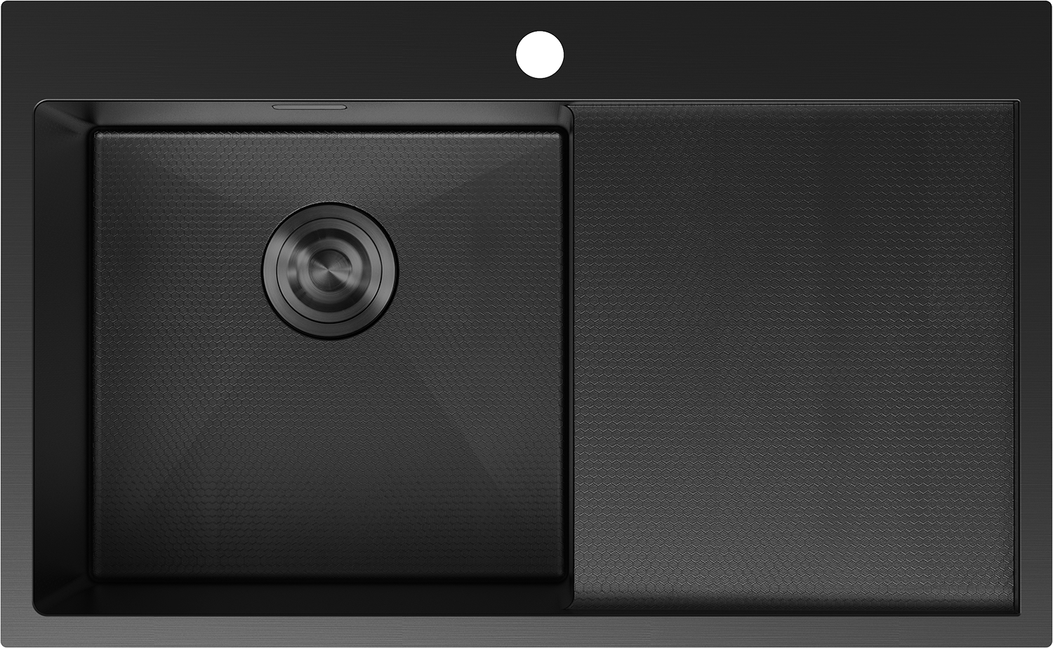 Mexen Exar bancada de cozinha em aço inoxidável 1-cuba com escorredor à esquerda 780 x 480 mm, preto HC - 6433781010L-70HC