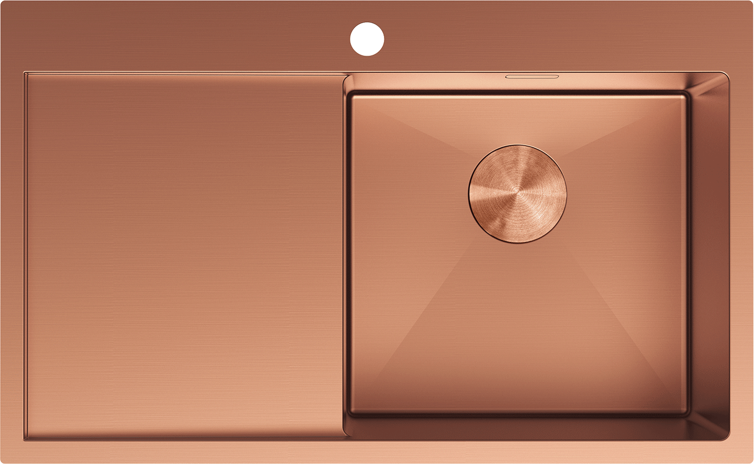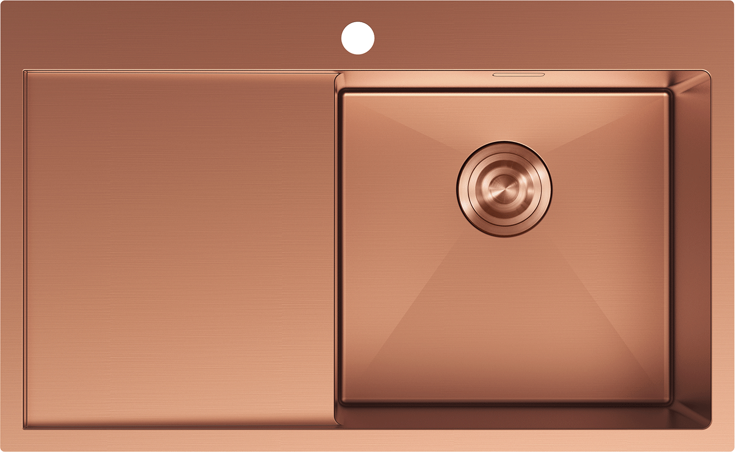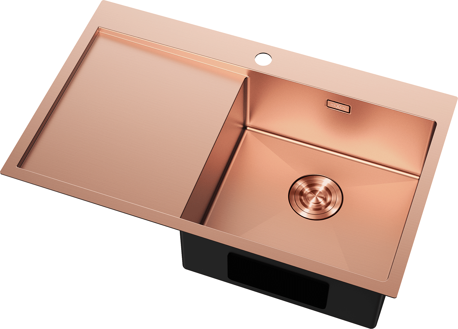 Mexen Exar lava-loiça de aço inoxidável com 1 cuba e escorredor à direita 780 x 480 mm, cobre - 6434781010P-65