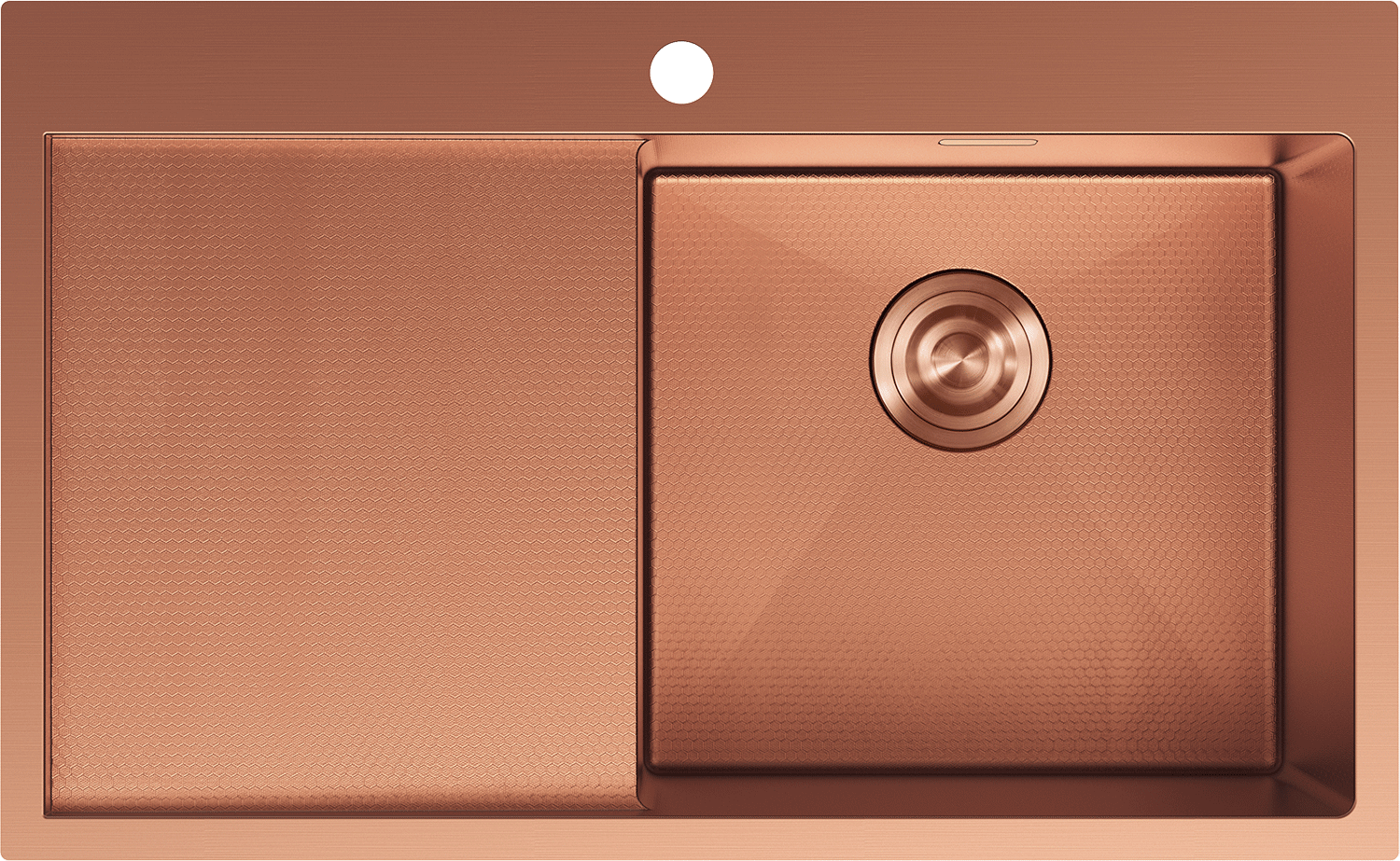 Mexen Exar lava-loiça de aço inoxidável de 1 cuba com escorredor direito 780 x 480 mm, cobre HC - 6434781010P-65HC