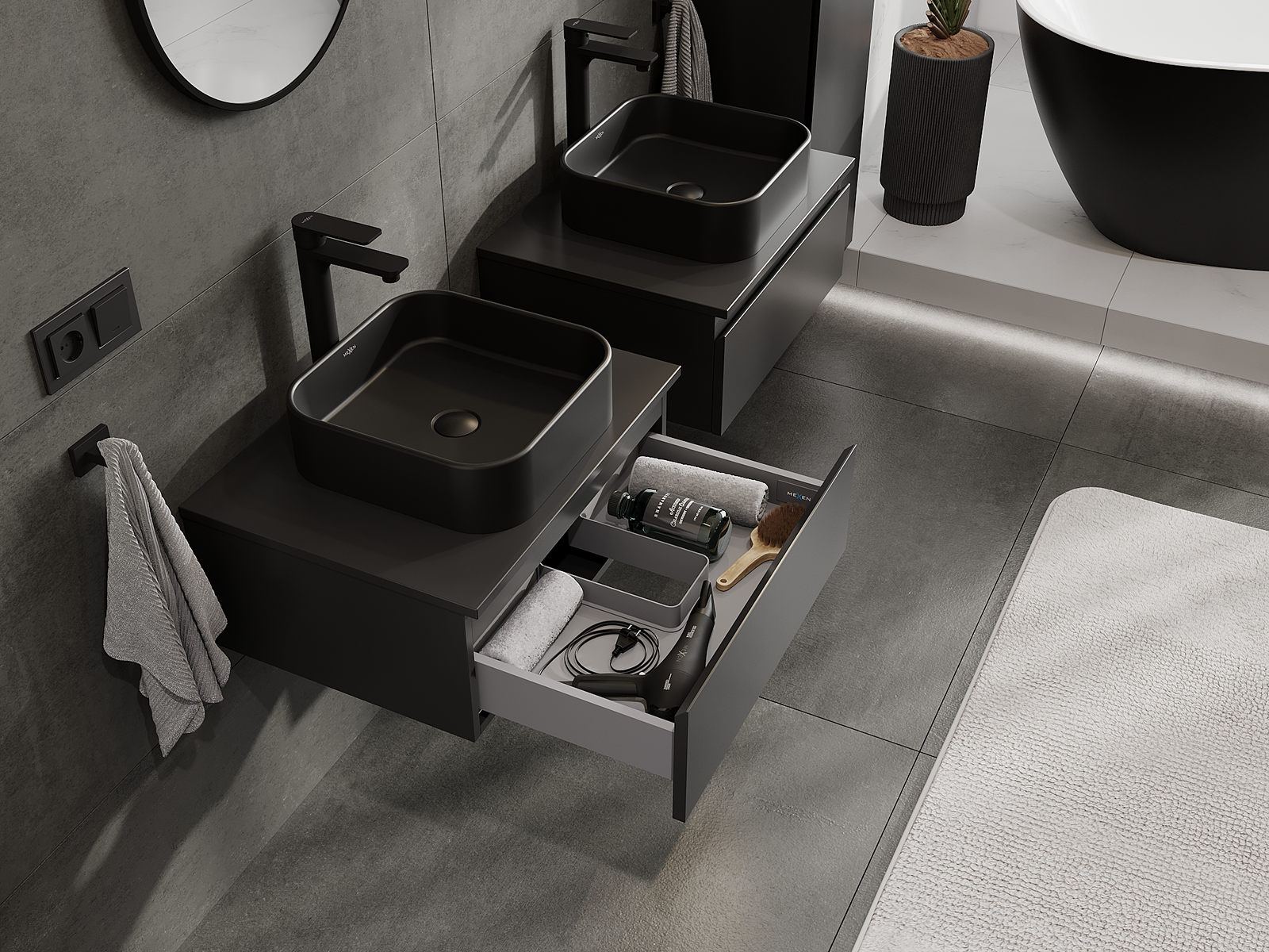 Mexen Orio armário de casa de banho abaixo do lavatório 60 cm, 1 gaveta, preto mate - 91A10-06023-1-BF71
