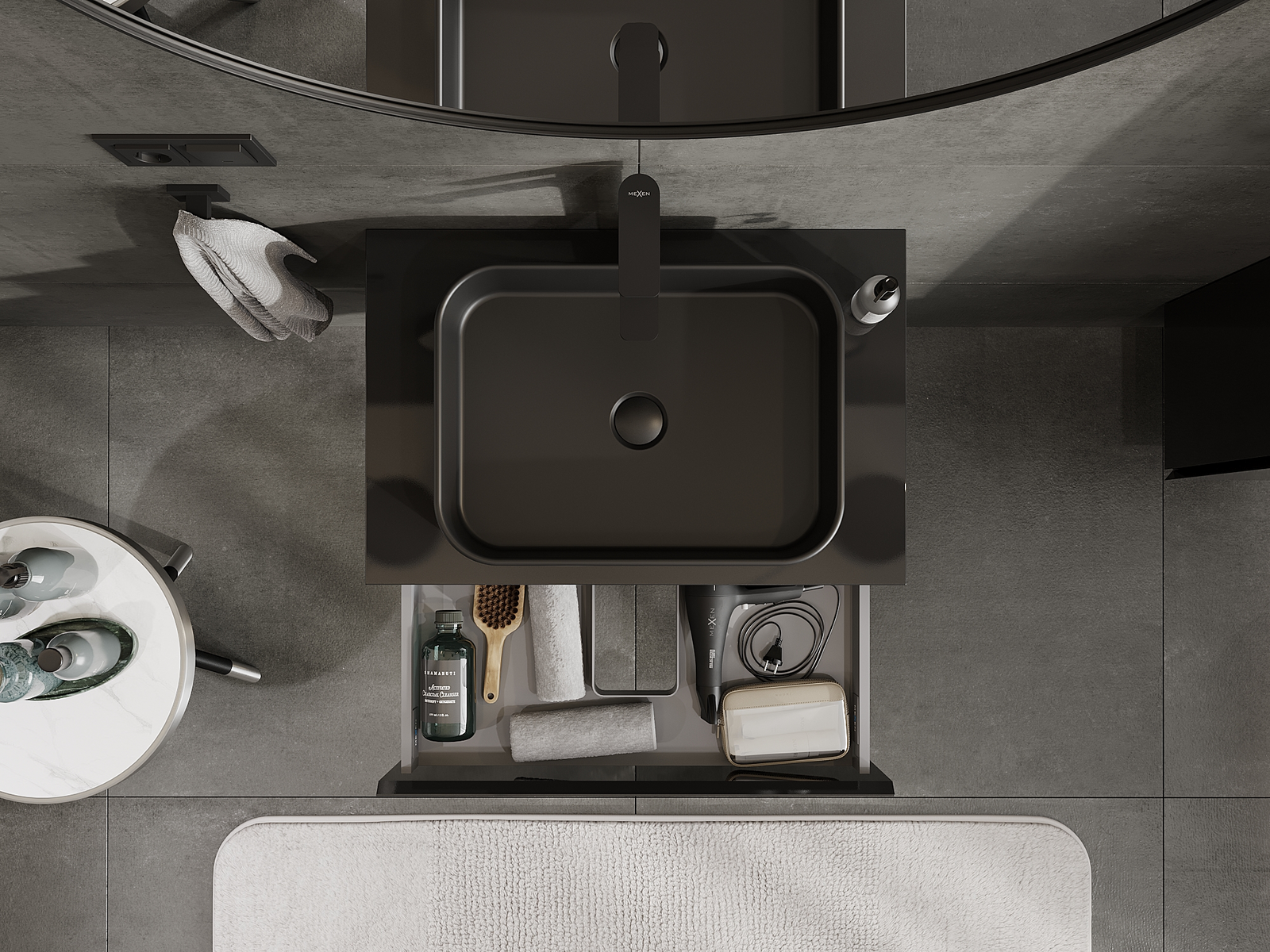 Mexen Orio armário de casa de banho sob lavatório 70 cm, 1 gaveta, preto brilho - 91A10-07023-1-BF70