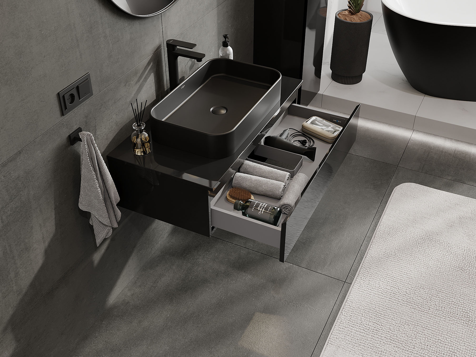 Mexen Orio armário de casa de banho para lavatório 90 cm, 1 gaveta, preto brilhante - 91A10-09023-1-BF70